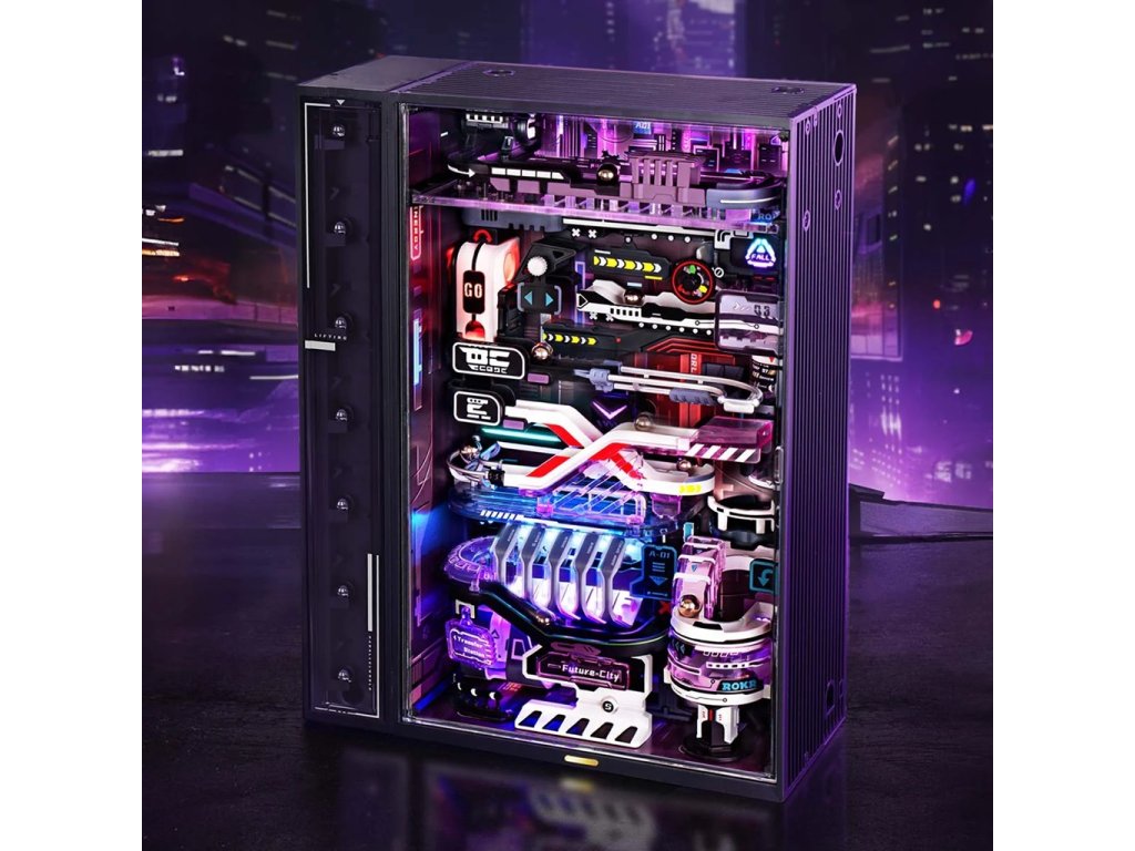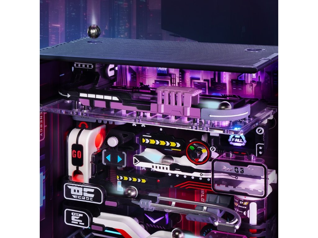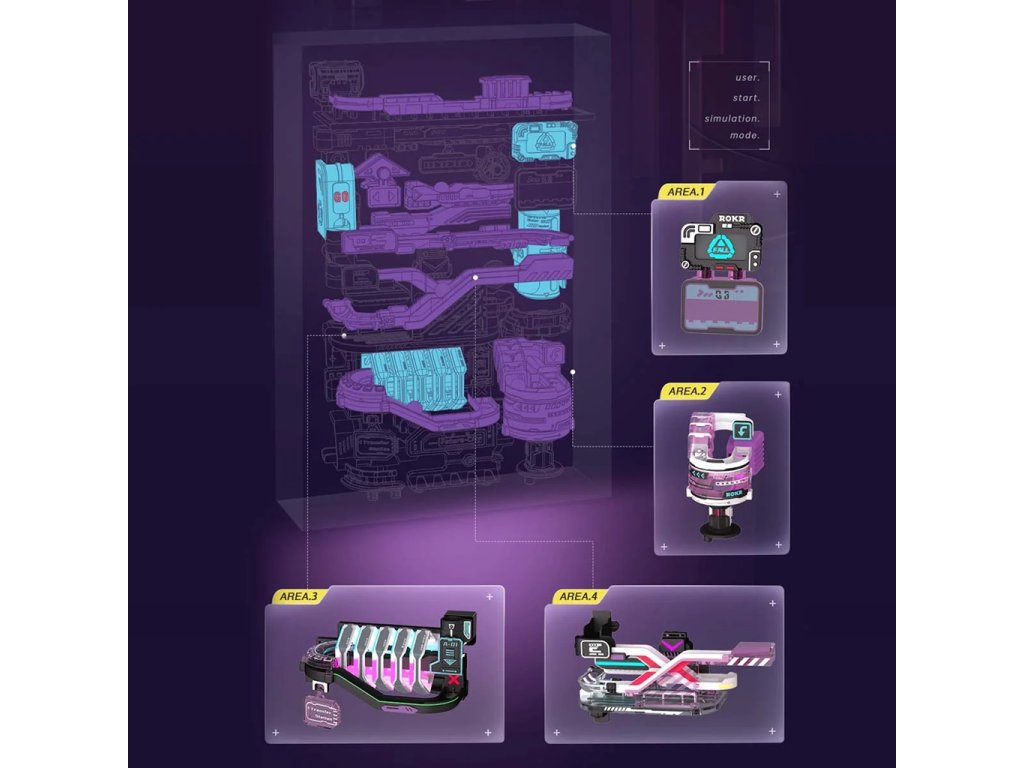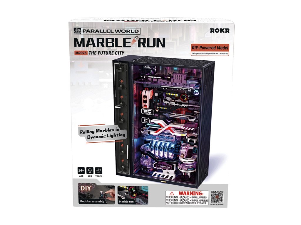 Kuličková dráha s automatickým výtahem je dlouhá 174 cm a má dynamické neónové osvětlení. Toto miniaturní panoráma rušného velkoměsta je navrženo do nejmenších detailů s důrazem na vizuální stránku. Kuličky putují dráhou v kyberpunkovém stylu zběsilou rychlostí v kulisách sci-fi města mezi výškovými budovami, potrubím a továrnami provázené záblesky neonů. Tlačítkem změníte osvětlení – užijte si rušné velkoměsto nebo pestrý noční život. Tento modul kuličkové dráhy je propojitelný s dalšími moduly jak vertikálně, tak horizontálně. Propojte s modulem 3D mechanická skládačka kuličkové dráhy Město minulosti MR01S pro maximální efekt. Je možné propojit až 4 moduly. K napájení slouží USB-C kabel (je součástí balení).3D skládačka je skvělý způsob, jak si užít kreativní a edukativní hraní a zároveň vytvořit netradiční dárek či doplněk interiéru. Skládání skládačky podporuje rozvoj jemné motoriky, prostorového myšlení a trpělivosti. Pozvěte svou rodinu nebo přátele a užijte si zábavné tvoření bez nutnosti použití lepidla nebo nástrojů. Všechny dílky do sebe lehce zapadnou, aby výsledek byl stabilní a odolný. Skládačka je dodávána v nesloženém stavu, zabalená v krabici s podrobným návodem k sestavení. Prosím, vezměte na vědomí, že tento produkt vytváří záblesky světla, které mohou u citlivých osob vyvolat epileptický záchvat. Hlavní vlastnosti: 1 modul města, 1 výtah140 přesných dílkůdoba sestavení 90 minstřední obtížnost sestaveníbez použití lepidlarozvíjí logické a motorické dovednostipodporuje trpělivost dětíLED osvětleník napájení slouží USB-C kabel – je součástí balenípodrobný návod k sestavení je součástí balenímožnost propojení s MR01S