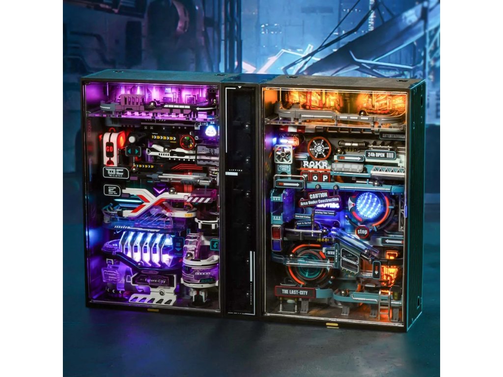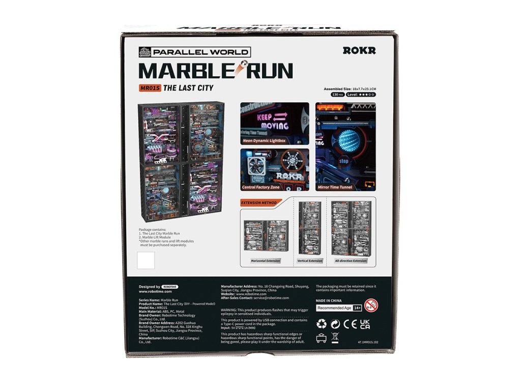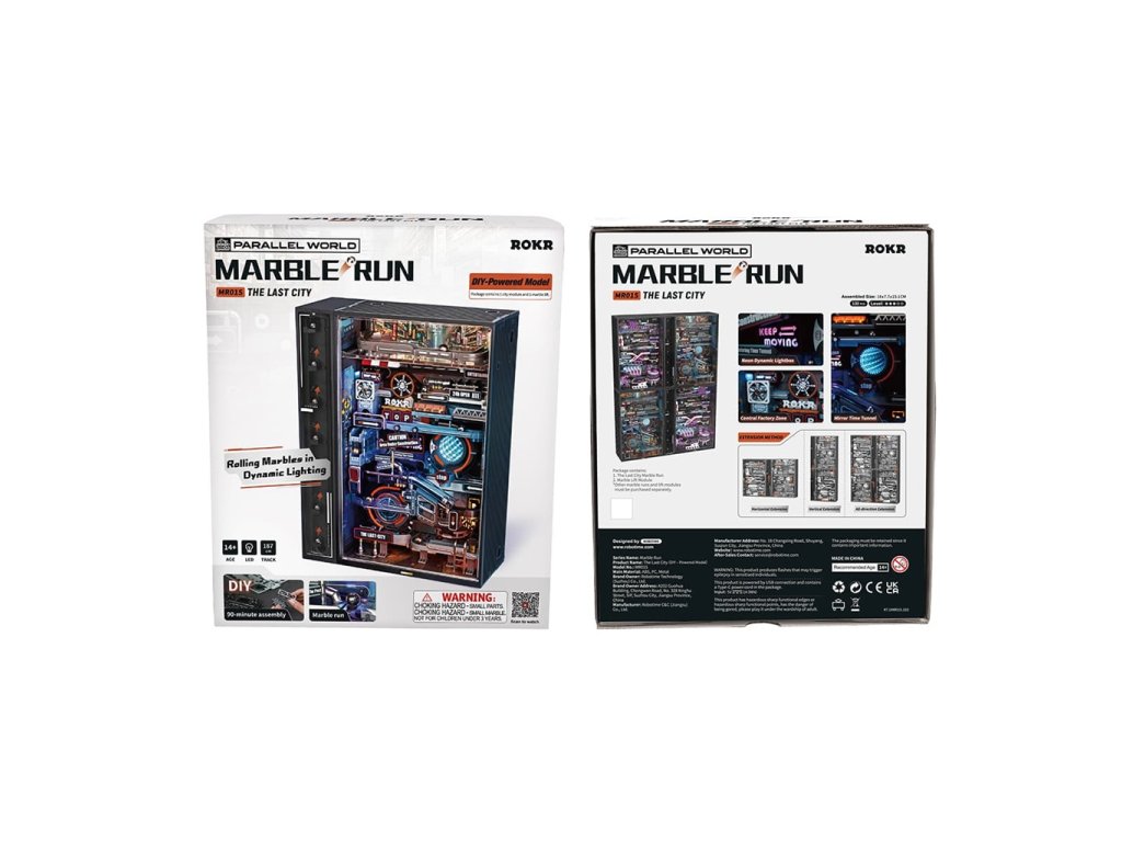 Kuličková dráha s automatickým výtahem je dlouhá 187 cm, má dynamické neónové osvětlení a je vybavena účinným motorem s velkým točivým momentem. Toto miniaturní panoráma rušného velkoměsta je navrženo do nejmenších detailů s důrazem na vizuální stránku. Kuličky putují dráhou inspirovanou industriálním steampunkem zběsilou rychlostí v kulisách města mezi budovami, potrubím a továrnami provázené záblesky neonů. Tento modul kuličkové dráhy je propojitelný s dalšími moduly jak vertikálně, tak horizontálně a je možné propojit až 4 moduly. Propojte s modulem 3D mechanická skládačka kuličkové dráhy Město minulosti MR02S pro maximální efekt. K napájení slouží USB-C kabel (je součástí balení).3D skládačka je skvělým způsobem, jak si užít kreativní a edukativní hraní a zároveň vytvořit netradiční dárek či doplněk interiéru. Skládání skládačky podporuje rozvoj jemné motoriky, prostorového myšlení a trpělivosti. Pozvěte svou rodinu nebo přátele a užijte si zábavné tvoření bez nutnosti použití lepidla nebo nástrojů. Všechny dílky do sebe lehce zapadnou, aby výsledek byl stabilní a odolný. Skládačka je dodávána v nesloženém stavu, zabalená v krabici s podrobným návodem k sestavení. Prosím, vezměte na vědomí, že tento produkt vytváří záblesky světla, které mohou u citlivých osob vyvolat epileptický záchvat. Hlavní vlastnosti: 1 modul města, 1 výtah130 přesných dílkůdoba sestavení 90 minstřední obtížnost sestaveníbez použití lepidla rozvíjí logické a motorické dovednostipodporuje trpělivost dětíLED osvětlenímožnost propojení s MR02Sk napájení slouží USB-C kabel – je součástí balenípodrobný návod k sestavení je součástí balení