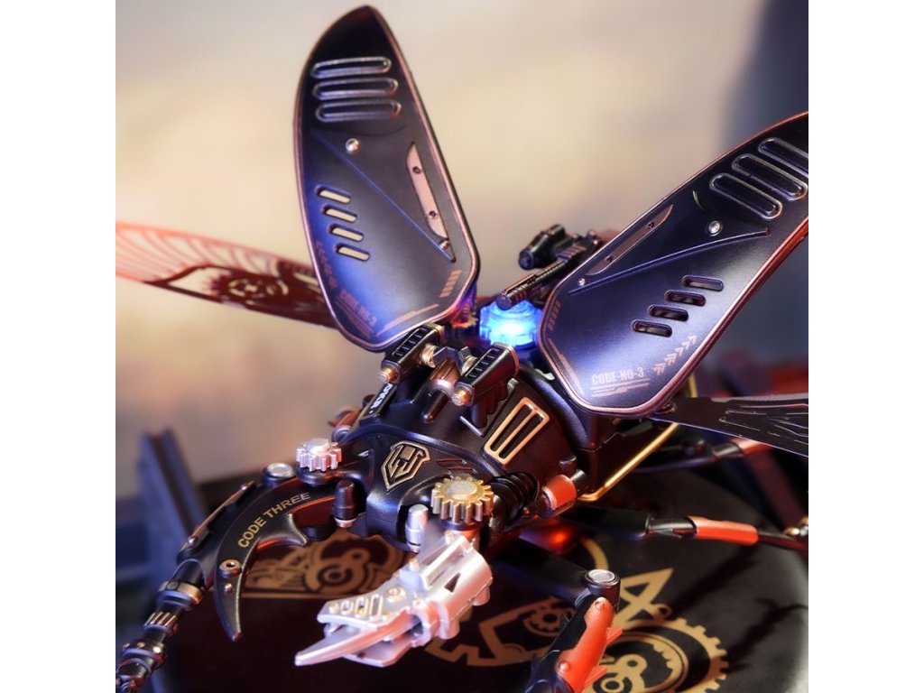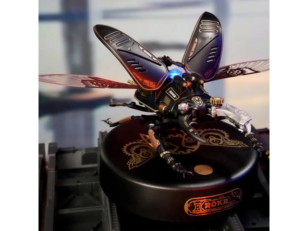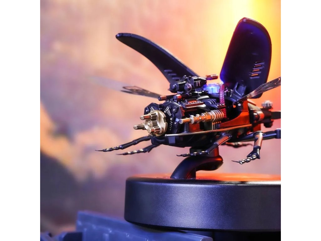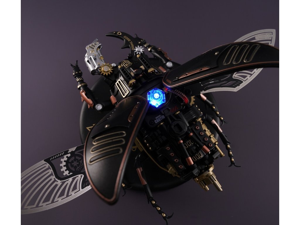 Milovníci detailů a mechanických umění, zastavte se na okamžik a představte si svět, kde skutečnost splývá s fantazií. Kde skuteční tvorové přírody se mění ve stroje připomínající steampunkové světy. Máme pro vás nový produkt - 3D mechanické puzzle modelu Roháč obecný! Jedná se o vlastnoručně sestavené bionické mechanické 3D puzzle s modelem Storm Beetle! Jakmile ho složíte, budete mít na stole mechanického brouka, který se zdá být oživlý. Jeho velké a unikátní čelisti, roztažená křídla a energetické reaktory připomínají skutečného roháče. Ohromná preciznost detailů, steampunkový design a kvalitní materiály, ze kterých je vyroben, přidávají na jeho hodnotě. Tento model vás upoutá na hodiny, kdy budete skládat jednotlivé díly a sledovat, jak se z nich stává brouk. Představte si ten pocit hrdosti a uspokojení, když dokončíte sestavení a vaše dílo se začne pohybovat. Připravte se na vysoce hardcore DIY zážitek! Začněte sestavovat tento nádherný model a uvidíte, jak se z jednotlivých dílů skládá celý brouk a jak se pohybují jeho kovová křídla a mechanické čelisti. Přidejte do toho ještě světelný indikátor energie a máte perfektní model pro sběratele nebo pro každého, koho baví mechanika a detaily. Posaďte se, připravte si nářadí a začněte skládat. Překvapte sebe nebo své blízké tímto unikátním modelem. Potřebné 3 kusy baterií AAA - nejsou součástí balení. Hlavní vlastnosti: počet dílů 115mechanické upínací čelistipohybující kovová membránová křídla (poháněná motorem)světelný indikátor energievyžaduje 3x AAA baterie - není součástí balenídoba sestavení cca 3 hodinystřední obtížnost sestavenívhodné od 14 let