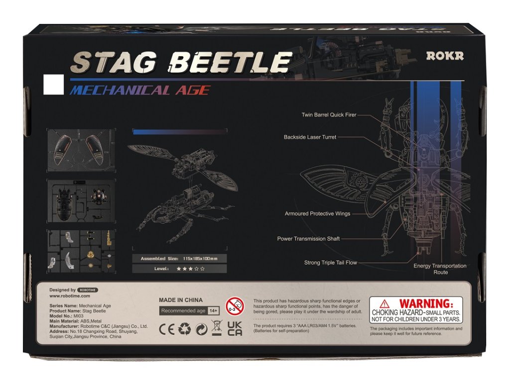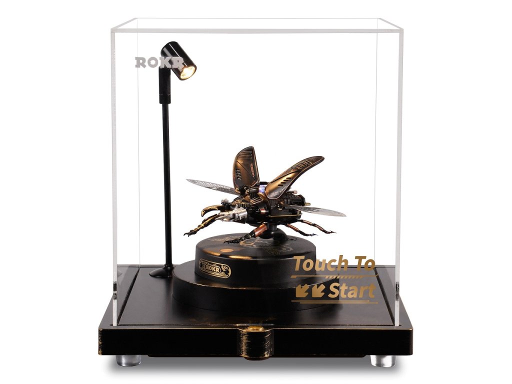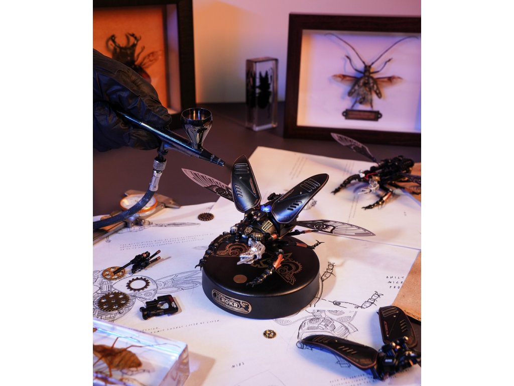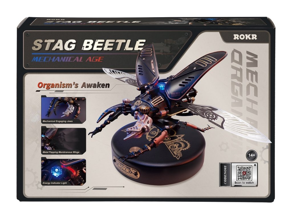 Milovníci detailů a mechanických umění, zastavte se na okamžik a představte si svět, kde skutečnost splývá s fantazií. Kde skuteční tvorové přírody se mění ve stroje připomínající steampunkové světy. Máme pro vás nový produkt - 3D mechanické puzzle modelu Roháč obecný! Jedná se o vlastnoručně sestavené bionické mechanické 3D puzzle s modelem Storm Beetle! Jakmile ho složíte, budete mít na stole mechanického brouka, který se zdá být oživlý. Jeho velké a unikátní čelisti, roztažená křídla a energetické reaktory připomínají skutečného roháče. Ohromná preciznost detailů, steampunkový design a kvalitní materiály, ze kterých je vyroben, přidávají na jeho hodnotě. Tento model vás upoutá na hodiny, kdy budete skládat jednotlivé díly a sledovat, jak se z nich stává brouk. Představte si ten pocit hrdosti a uspokojení, když dokončíte sestavení a vaše dílo se začne pohybovat. Připravte se na vysoce hardcore DIY zážitek! Začněte sestavovat tento nádherný model a uvidíte, jak se z jednotlivých dílů skládá celý brouk a jak se pohybují jeho kovová křídla a mechanické čelisti. Přidejte do toho ještě světelný indikátor energie a máte perfektní model pro sběratele nebo pro každého, koho baví mechanika a detaily. Posaďte se, připravte si nářadí a začněte skládat. Překvapte sebe nebo své blízké tímto unikátním modelem. Potřebné 3 kusy baterií AAA - nejsou součástí balení. Hlavní vlastnosti: počet dílů 115mechanické upínací čelistipohybující kovová membránová křídla (poháněná motorem)světelný indikátor energievyžaduje 3x AAA baterie - není součástí balenídoba sestavení cca 3 hodinystřední obtížnost sestavenívhodné od 14 let