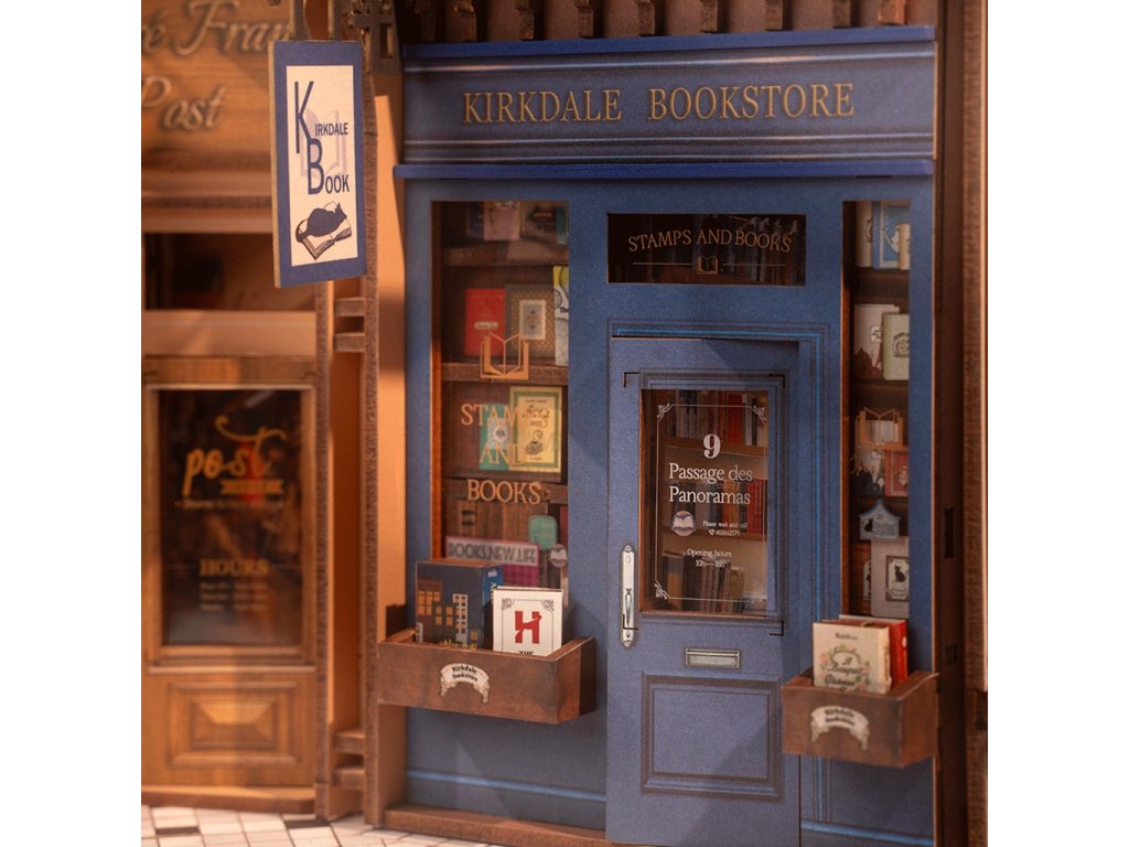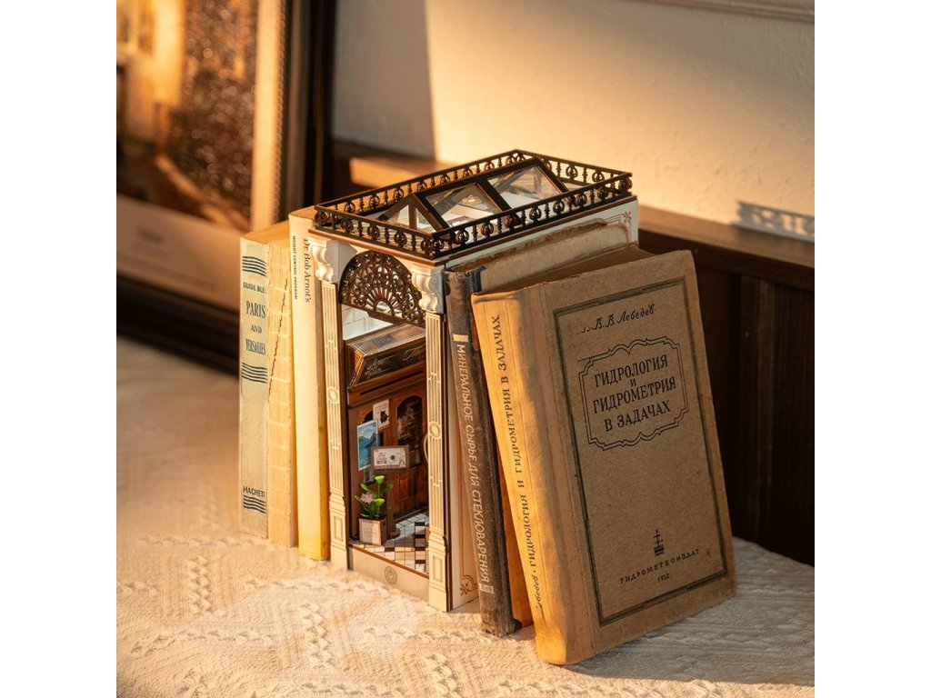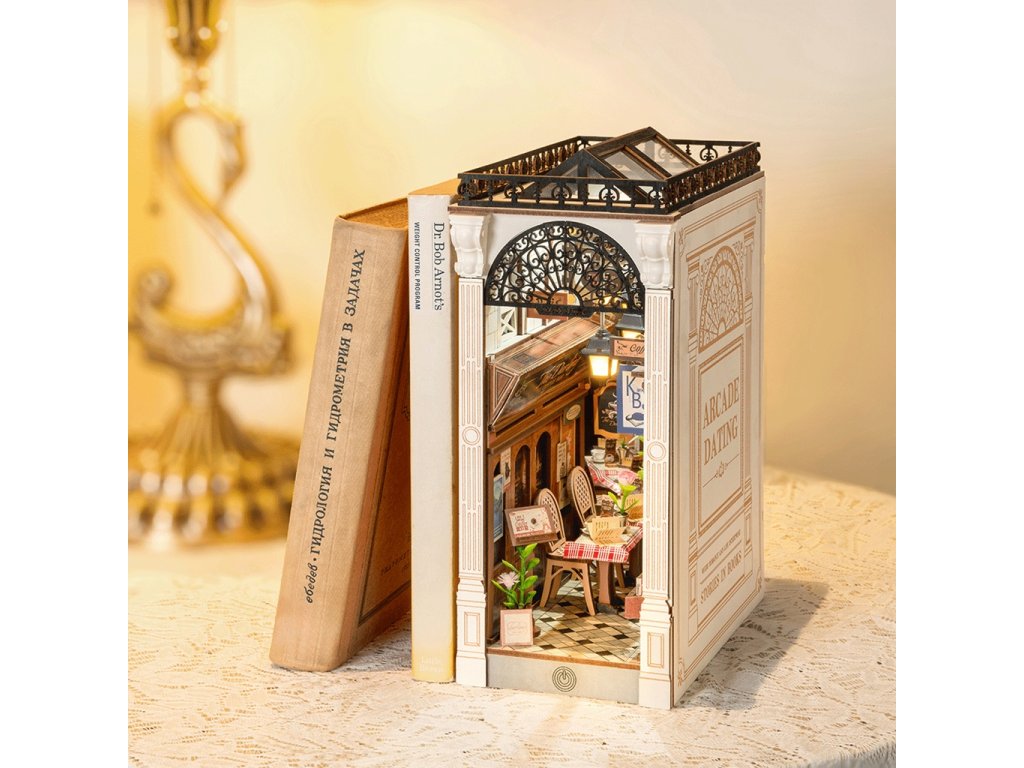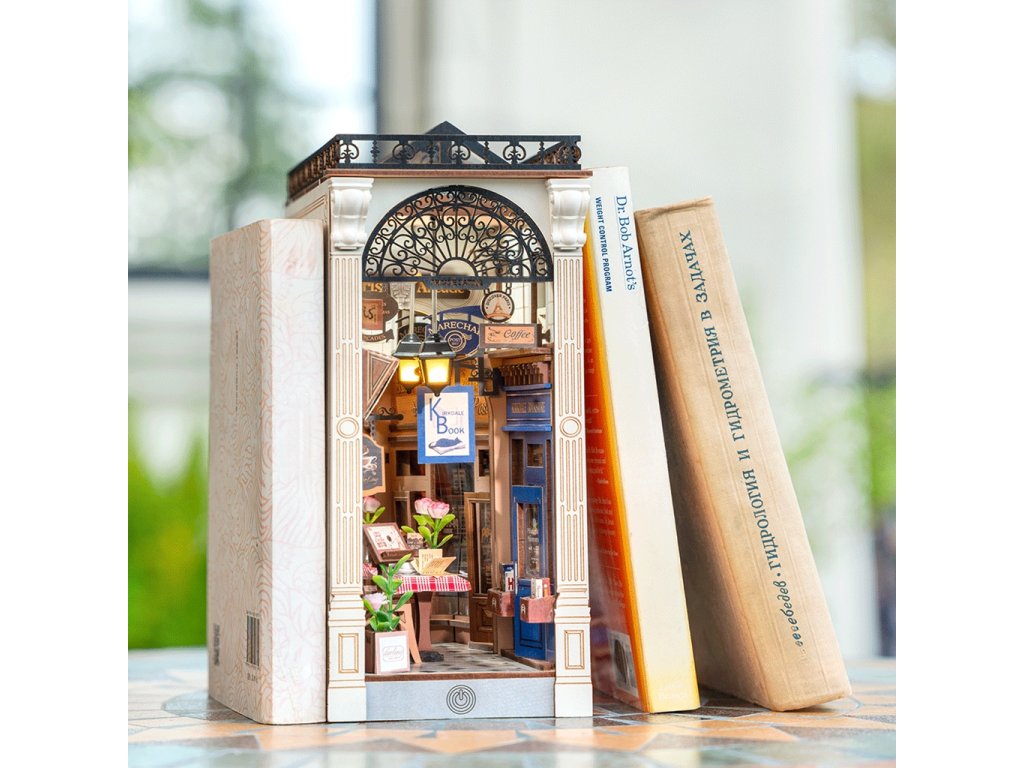 RoboTime 3D skládačka Zarážka na knihy Miniatura domečku Setkání v pasáži s knihami