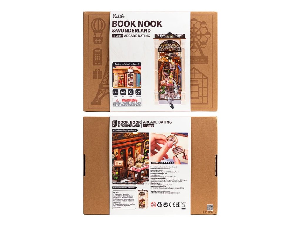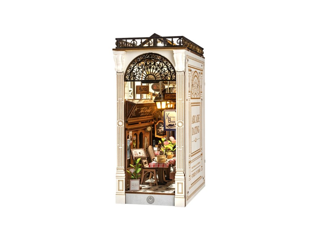 Proměňte svou knihovnu v romantický kout díky skládačce pasáže s knižním zákoutím a kavárnou. Malebná pasáž v evropském stylu vytváří dokonalou atmosféru pro první rande či přátelská setkání. Teplé světlo tří zavěšených lamp naplňuje pasáž útulnou atmosférou a upozorní na posezení zastrčené mezi kavárnou a knihkupectvím. Kavárna vyzařuje pohodu díky rustikálním dřevěným detailům, zatímco fasáda knihkupectví s vintage nápisy a knihami nabízí pohled do světa nekonečných příběhů. Horní část je ozdobena detailně propracovanou mříží a zábradlím na střeše. Pozvěte svou rodinu nebo přátele a užijte si zábavné tvoření bez nutnosti použití lepidla nebo nástrojů. Všechny díly skládačky jsou přesně vyřezané a lehce do sebe zapadnou, aby výsledek byl stabilní a odolný. Plastová fólie ochrání Váš výtvor před prachem a nečistotami. Dodáváno s podrobným návodem k sestavení. Hlavní vlastnosti: 148 precizně vyřezaných dílůsnadná montáž bez použití lepidla a nástrojůrozvíjí logické a motorické dovednostipodporuje trpělivost ideální jako dárek nebo jedinečná dekoracestřední obtížnostLED osvětleník napájení slouží 2xAAA baterie (nejsou součástí balení)včetně ochranné fólienávod k sestavení je součástí balení