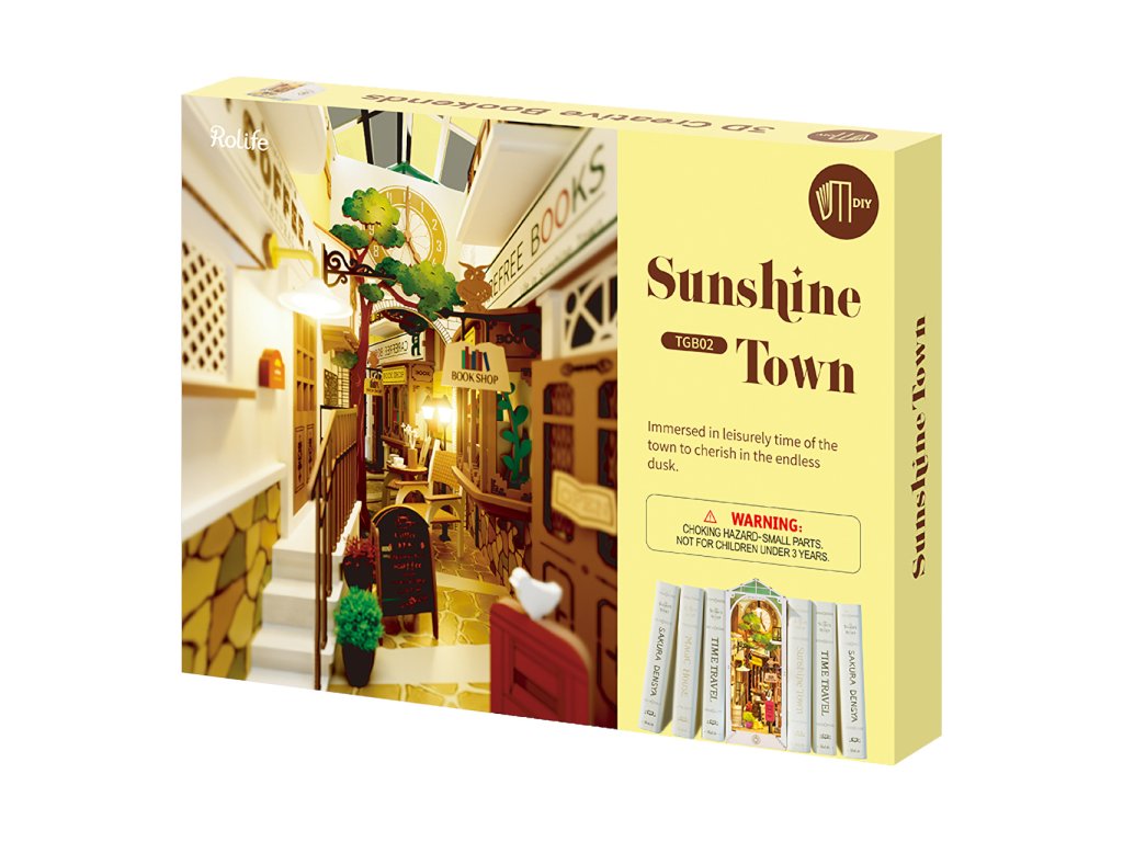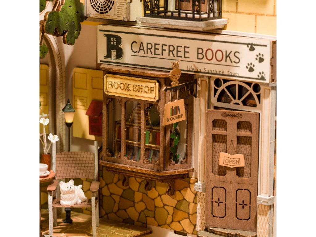 RoboTime 3D skládačka Zarážka na knihy Miniatura domečku Slunečné městečko