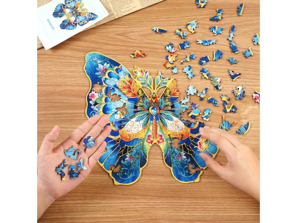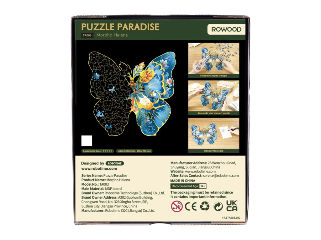 RoboTime Dřevěné puzzle Motýl Morpho Helena