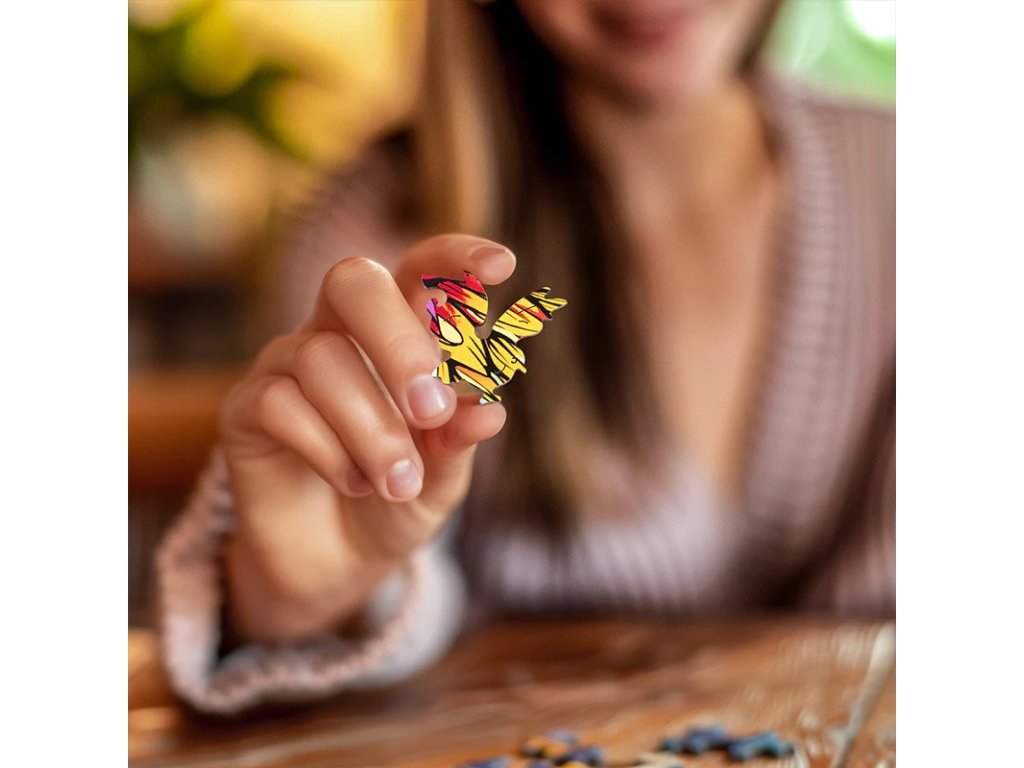 Unikátní pestrobarevné dřevěné puzzle, které spojuje prvotřídní zpracování s uměleckou hodnotou, je vyrobeno z vysoce kvalitního dřeva. Každý dílek je jedinečný! Dílky jsou různých tvarů a jsou precizně vyřezány laserem, což zajišťuje dokonalou přesnost a hladkost hran. To usnadňuje skládání i manipulaci a dílky do sebe dokonale zapadají. Puzzle je opakovaně použitelné, takže si zábavu při skládání můžete užít znovu a znovu. Je to výzva pro všechny milovníky skládaček a také dobrá příležitost, jak příjemně strávit čas se svou rodinou či přáteli. Kromě toho může být pěkným dárkem a po dokončení se stane atraktivním doplňkem Vašeho domova či kanceláře. Skládání puzzle trénuje mozek, podporuje trpělivost, jemnou motoriku a dovednosti při řešení problémů. Hlavní vlastnosti: obsahuje 200 jedinečných dílkůtvarované dílky precizně vyřezány laseremrozvíjí logické myšlení a motorikuvyrobeno z vysoce kvalitního dřevafólie na podlepení je součástí balení