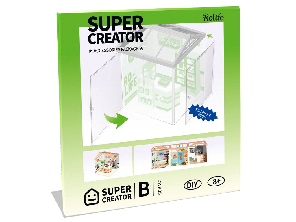 Dveře proti prachu jsou určeny pro řadu Super Creator. V kombinaci se střechou B (produktové číslo DWP02) jde o kompletní ochranu miniatury domečku před prachem. Pokud máte jen jednu miniaturu a chcete ji kompletně ochránit, je potřeba 2 kusy dveří a 1 kus střechy. Pokud máte sestavu více miniatur, použijte tolik kusů dveří a střech, kolik nechráněných stran ve Vaší sestavě je. Hlavní vlastnosti: balení obsahuje 1 ks dveříochrana modelů před prachem a nečistotamikompatibilní s modely jako např. DW001 až DW012