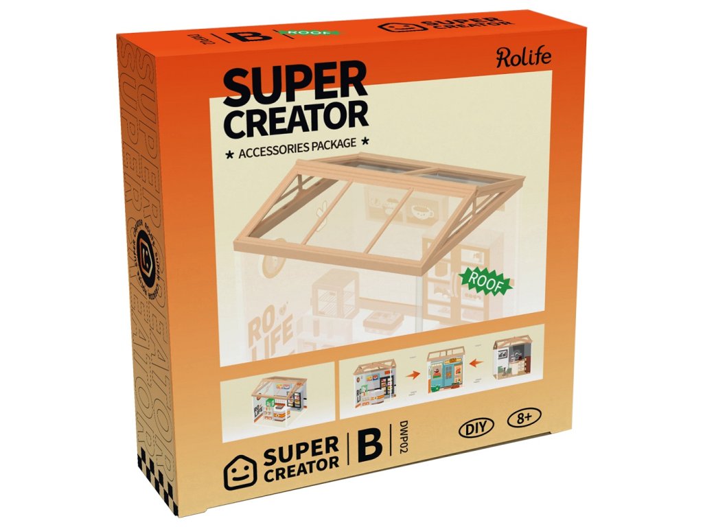 Střecha proti prachu je určena pro řadu Super Creator. V kombinaci se dveřmi (produktové číslo DWP05) jde o kompletní ochranu miniatury domečku před prachem. Pokud máte jen jednu miniaturu a chcete ji kompletně ochránit, je potřeba 2 kusy dveří a 1 kus střechy. Pokud máte sestavu více miniatur, použijte tolik kusů dveří a střech, kolik nechráněných stran ve Vaší sestavě je. Hlavní vlastnosti: balení obsahuje střechu typu B ochrana modelů před prachem a nečistotamikompatibilní s modely miniatur domečků DW001 až DW012