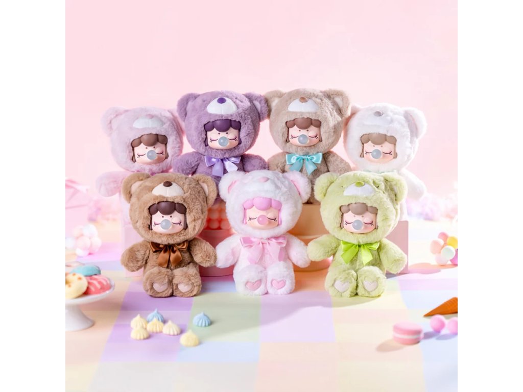 Cena je uvedena za 1 ks. Zasíláme náhodně. Obsah balení je překvapením. Roztomilá Nanci, plyšová panenka s typickým výrazem, si okamžitě získá pozornost malých i velkých sběratelů. Má zavřené oči, kulatý obličej a nafouknutou bublinu ze žvýkačky, která tvoří výrazný hravý detail. Celá panenka je provedena v jednom celku z měkkého plyšového materiálu, tvarovaného do podoby medvídka, s mašlí u krku. Na tlapkách jsou jemné vyšité detaily ve tvaru srdíček. Díky hebkému materiálu je panenka příjemná na dotek, vhodná k mazlení i jako dekorace do dětského pokoje. Panenky jsou dostupné v několika barevných variantách. Každý kus je balen samostatně a odesílá se náhodně, nikdo předem neví, jaká varianta se v krabičce ukrývá. Otevření balení je tak vždy malým překvapením. Hlavní vlastnosti: panenka v provedení plyšového medvídkaměkký a hebký plyšový materiálmašle u krku a vyšité detaily na tlapkáchvíce barevných variant náhodný výběr – překvapení v každé krabičcevhodná na hraní, mazlení i jako dekoraceideální jako dárek