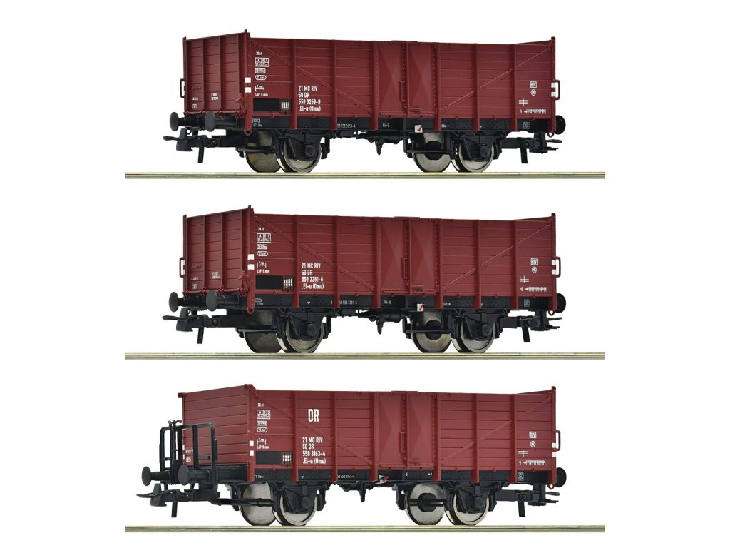 Roco 3dílná sada otevřených nákladních vozů DR - 6600146