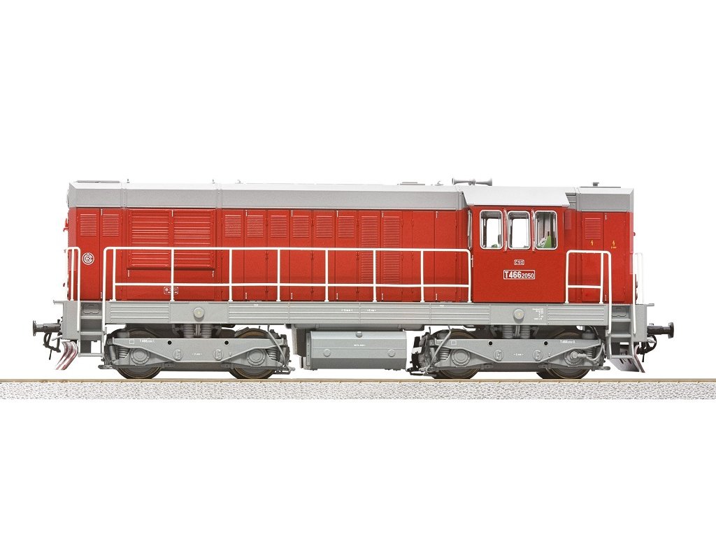 Motorová lokomotiva Československých státních drah T 466 2050. Nový design! Verze 1. série s hladkou boční stěnou kabiny. Detailně propracovaný model s mnoha samostatně použitelnými zásuvnými díly. Přehledný pohled do kabiny strojvedoucího. Filigránové bezpečnostní zábradlí. Sady kol s nízkými přírubami kol. Instalované osvětlení kabiny řidiče. V 70. letech 20. století měly bývalé Československé státní dráhy (ČSD) velmi potřebovaly výkonné nákladní vlakové dieselové lokomotivy pro středně těžké posunovací a traťové služby. Z průmyslové lokomotivy typu T 448 byla proto odvozena lehčí varianta T 466.2. Vyráběla se v ČKD v Praze od roku 1977 v devíti sériích (každá s drobnými odlišnostmi) v počtu 494 kusů a ČSD ji nasazovaly do provozu až do roku 1986. Hlavní vlastnosti: spojka Hřídel NEM 362 s kinematikou KKminimální rádius 358 mmepocha IV3 světlomety/2 koncová světla, v závislosti na směru jízdyzvuk - ANOLED světlomet - ANOpočet hnaných náprav 4počet náprav s trakčními pneumatikami 1 digitální rozhraní - PluX22typ dekodéru - MS450P22 Dokumentace: návod k obsluze (DE, EN,CZ)obecný dodatek (DE, EN, CZ) list náshradních dílů (DE, EN)konfigurační a funkční klíče (DE, EN)