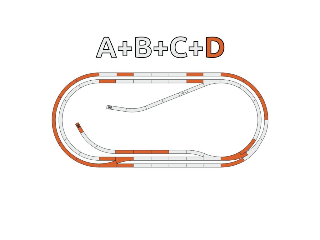 Rozšiřující sada kolejí s detailní reprodukcí dřevěných pražců na štěrkovém podloží, ve věrných barvách. Zahrnuje součásti ke stavbě paralelní trati připojené prostřednictvím dvojice jednoduchých a jedné obloukové výhybky. Ke kompletaci tratě z ilustračního obrázku je nutno prve vlastnit, či zakoupit základní ovál s podložím (A) a rozšiřující sady kolejí B a C (č. 61101 a 61102). Základní ovál se skládá z 12 ks obloukových kolejí R3 (č. 61123) a 8 ks přímé koleje G200 (č. 61110).Nová generace kolejiva ROCO geoLINE mění svět modelové železnice v jedinečnou stavebnici přístupnou i začátečníkům. Přichází s řadou inovací, které mohou železničním modelářům významně usnadnit plánování a stavbu kolejišť. Všechny díly byly navrženy a přizpůsobeny tak, aby stavitele zbavily nutnosti použití dodatečných kolejnic zvláštních rozměrů. Robustní, zesílená konstrukce s vodícími západkami nabízí zvlášť vysokou životnost a umožňuje ještě jednodušší a také bezpečnější opakované sestavování i rozebírání. Tělesa podloží byla navržena s důrazem na tlumení vznikajícího hluku a rezonancí. Pro dokonalé odhlučnění jsou opatřena sloupky, které je možno doplnit o zvlášť dodávané gumové patky. Díky předpřipraveným prvkům a pouzdření lze v podloží pohodlně skrýt napájení, přestavníky výhybek i magneticky ovládané spínače a jejich vedení. Samozřejmostí jsou kolejnice ze slitiny zinku a stříbra zaručující prvotřídní elektrickou vodivost a korozivzdornost.Precizně zpracované kolejnice ROCO geoLINE zvláště věrně reprodukují předlohu. Dbejte proto, aby dvojkolí Vaší soupravy odpovídalo normě NEM 311. Minimální konstrukční plocha: 250×105 cm. Hlavní vlastnosti: paralelní trať se třemi výhybkamireprodukce dřevěných pražcůvčetně podloží Tato sada obsahuje: Kolej rovná G200 s podložím – 61110 (3 ks)Kolej rovná G185 s podložím – 61111 (6 ks)Kolej rovná G100 s podložím – 61113 (1 ks)Kolej oblouková R3 s podložím – 61123 (1 ks)Kolej oblouková R4 s podložím – 61124 (10 ks)Výhybka jednoduchá levá s podložím – 61140 (2 ks)Výhybka R3/4 oblouková levá s podložím – 61154 (1 ks)Kolejové zarážedlo s 2 ks zarážek – 42608 (1 ks)Záslepka podloží – 61180 (1 ks) Dokumentace: brožura ke kolejivu ROCO geoLINE (DE, EN, FR)
