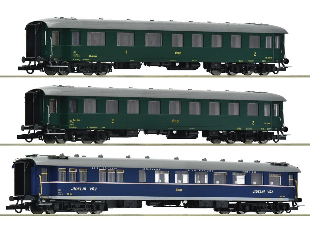 Představujeme Vám tři detailně propracované modely vagónů – 1./2. třídy (typ ABa), 2. třídy (typ Ba) a jídelní vůz (typ WR) – věrně zachycující eleganci a atmosféru epochy III - IV. Jemné detaily, jako jsou speciálně připevněné zásuvné díly a prototypové vnitřní vybavení, Vás ohromí svou propracovaností. Díky možnosti dodatečné instalace vnitřního osvětlení (číslo položky 6452) vytvoříte magickou atmosféru i za tmy. Vnitřní nábytek dokresluje autentičnost modelu a hřídel NEM 362 s kinematikou KK zaručuje plynulý a realistický pohyb po kolejích. Elektrická soustava DC analog umožňuje snadné zapojení do Vaší stávající modelové železnice. Snadná manipulace a srozumitelné instrukce dělají z této sady ideální volbu i pro ty, kteří s modelářstvím teprve začínají. Každý vagón je plně funkční a můžete ho libovolně kombinovat s ostatními modely ve Vaší sbírce. Specifikace: hřídel NEM 362 s kinematikou KKčíslo položky AC dvojkolí 6560číslo položky osvětlení interiéru 6452DC analogměřítko H0epocha III - IV Hlavní vlastnosti: autentický designvynikající jízdní vlastnostivybaveno vnitřním nábytkemdopravce ČSDvhodné od 14 let Dokumentace: návod k obsluze (DE)