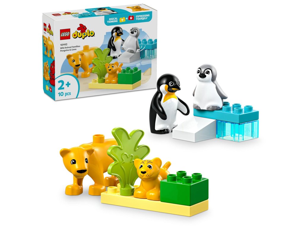 Vydejte se s dětmi od 2 let na zábavnou vzdělávací cestu z Antarktidy do Afriky s touto roztomilou stavebnicí s přírodní tematikou. Stavebnice Rodinky divokých zvířat: Tučňáci a lvi (10442) obsahuje 2 tučňáky a 2 lvy LEGO® DUPLO®, kteří děti inspirují k hodinám zábavného kreativního hraní. Představte dětem rozdíly mezi dospělými zvířátky a jejich mláďaty a ukažte jim tropické a chladné podnebí. Pomozte své ratolesti rozvíjet pečovatelské dovednosti při hře na dospělá zvířátka, která se starají o svá mláďata. Ukažte jim, že stejně jako vy si i zvířecí rodiče rádi hrají se svými potomky. Společně postavte ledovou skluzavku pro tučňáky a travnatou plochu, na které si mohou hrát lvi. Při hraní a stavění bude vaše dítko rozvíjet své jemné motorické dovednosti. Stavebnice LEGO DUPLO se zvířátky pro malé děti jsou navrženy odborníky tak, aby inspirovaly příběhy, a mají pestré barvy a rozmanité figurky, které podněcují sociální a emocionální rozvoj malých dětí zábavným způsobem.