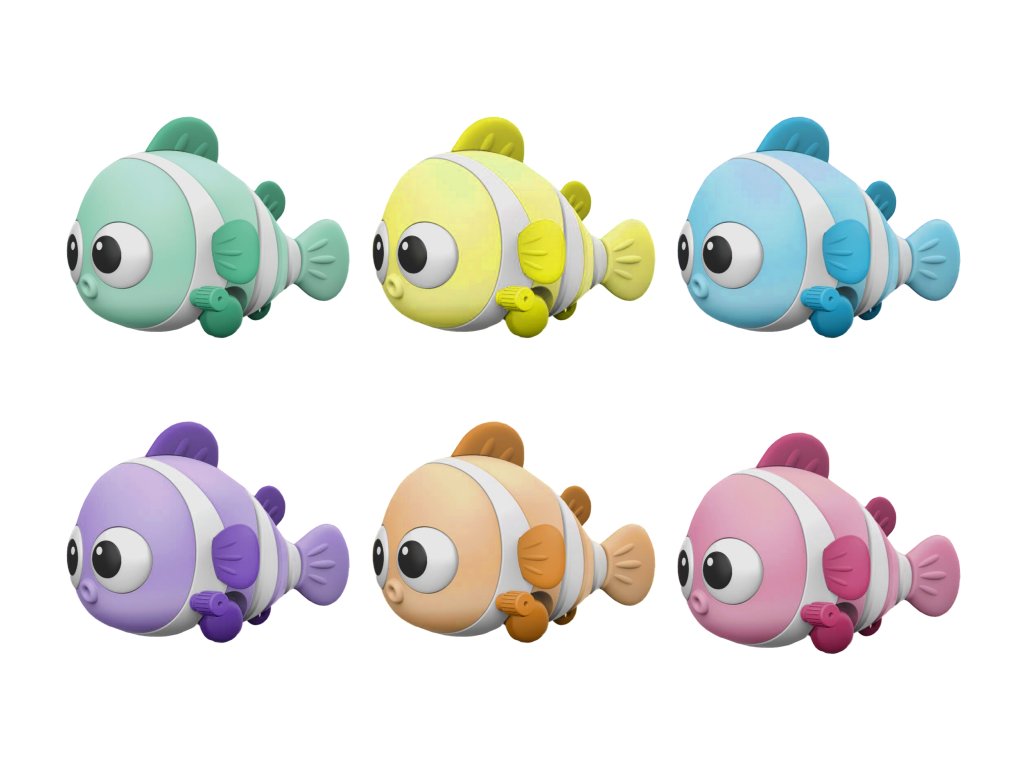Ryba na natažení 10,5 cm. Přesné rozměry 10,5x8,4x6,5 cm. Display box - 6 ks. 6 variant - modrá, fialová, žlutá, zelená, oranžová, růžová.
