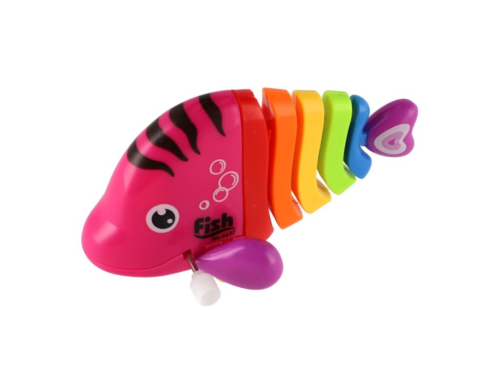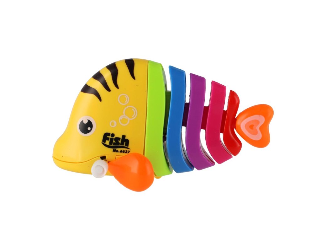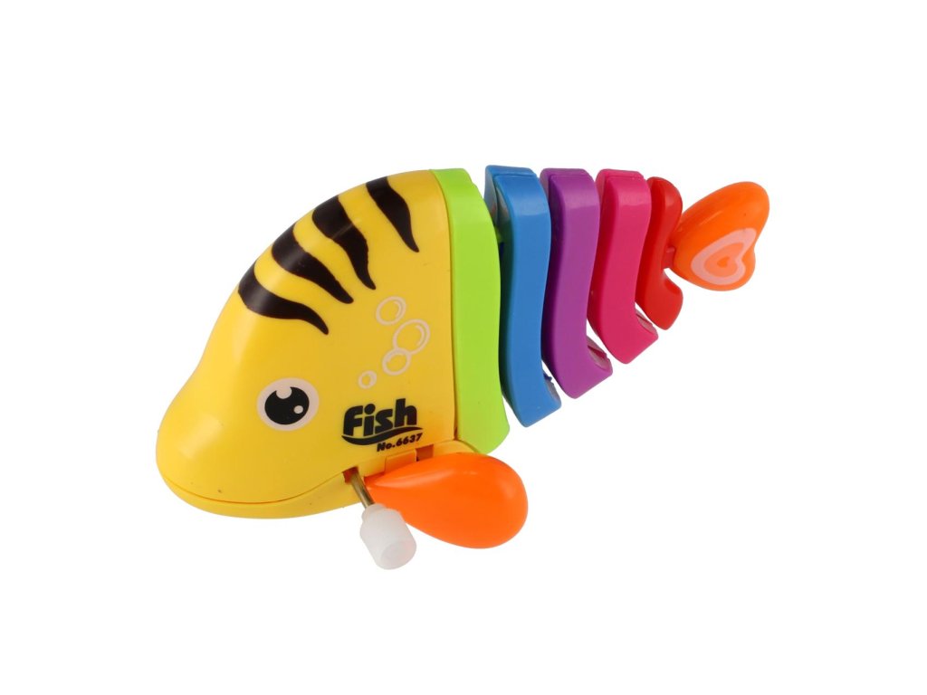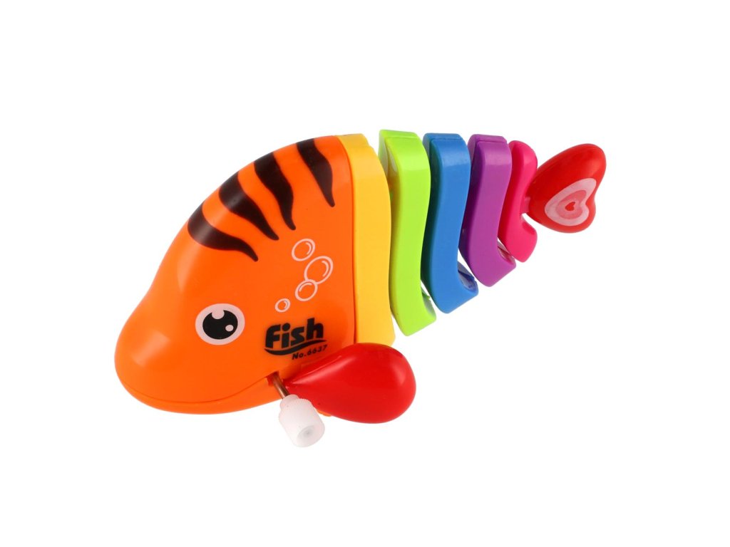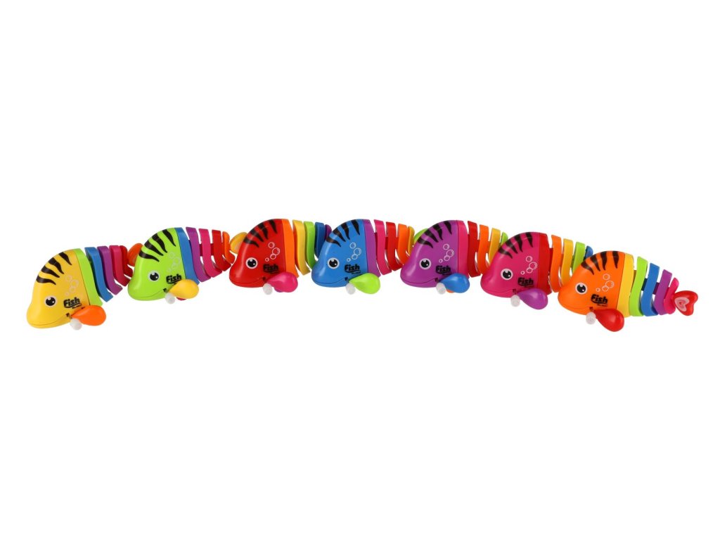 Pestrobarevná rybka na natažení vyrobená z plastu. Veliskot 11 cm.
