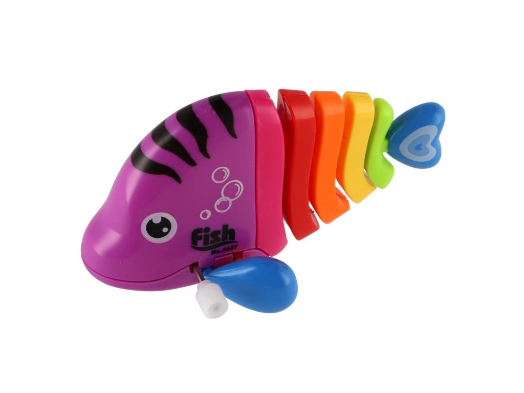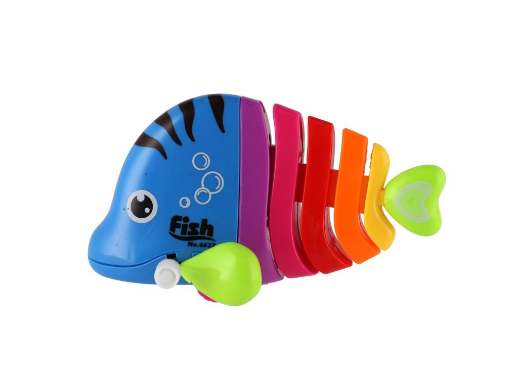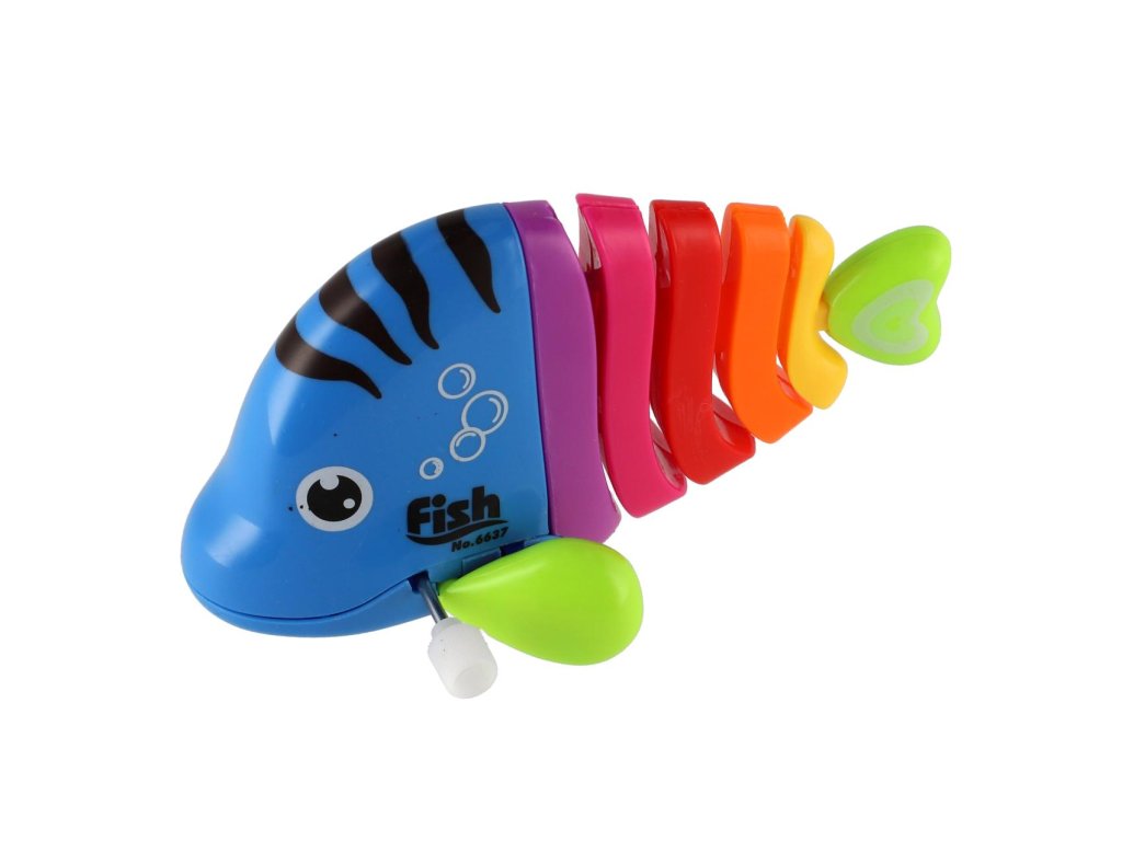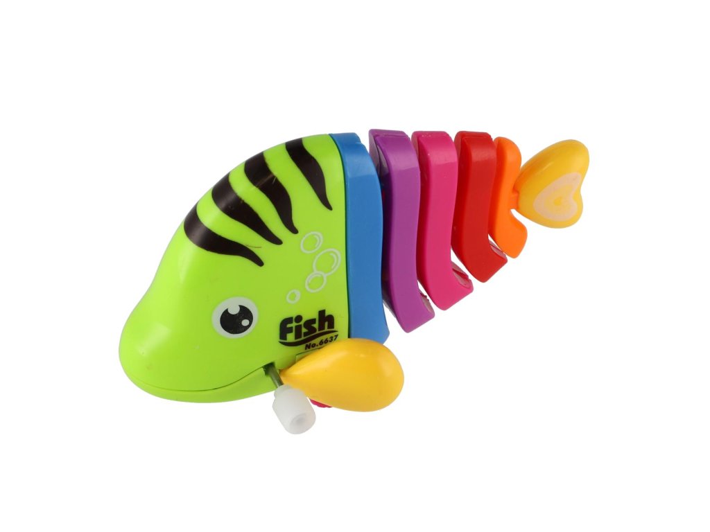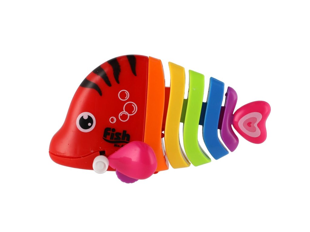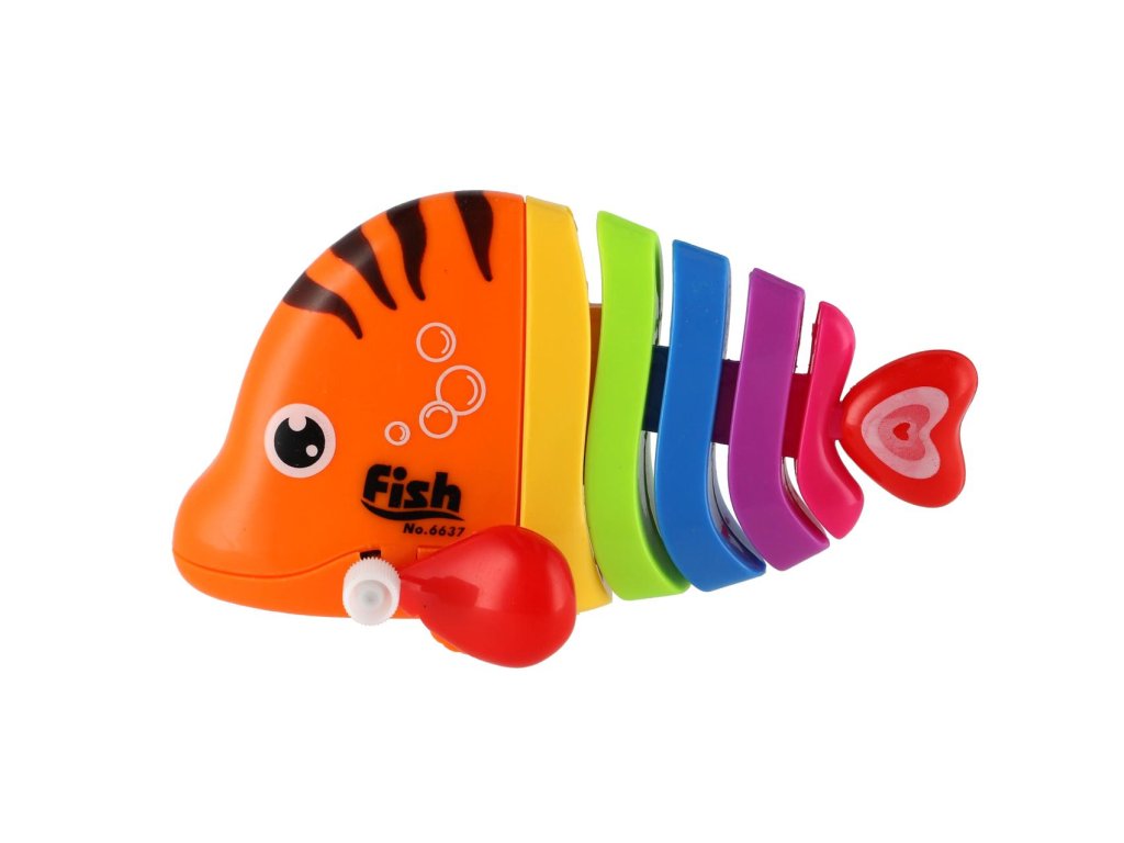 Pestrobarevná rybka na natažení vyrobená z plastu. Veliskot 11 cm.