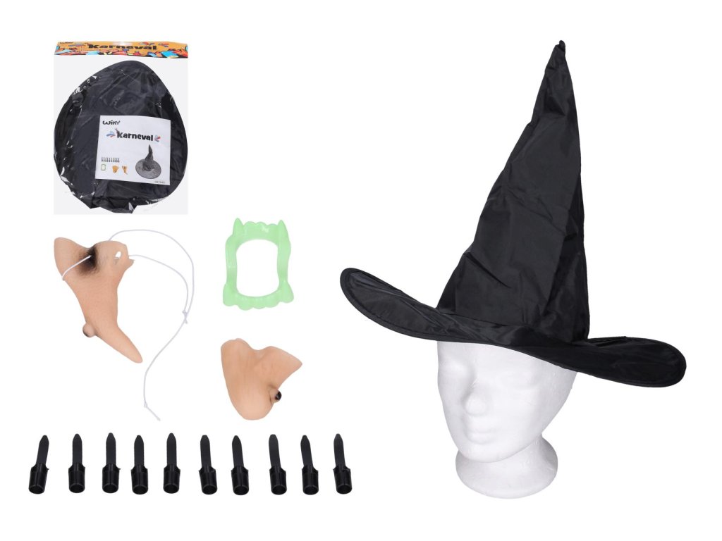 Sada čarodějnice plast nos, brada, prsty, klobouk, zuby v sáčku 22x28cm karneval