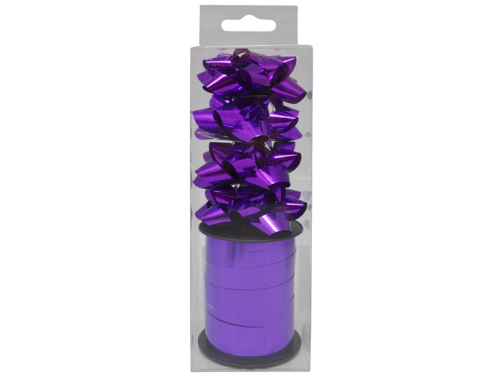 Sada dárkových mašlí, fialová, 4 ks a stuha 10 m