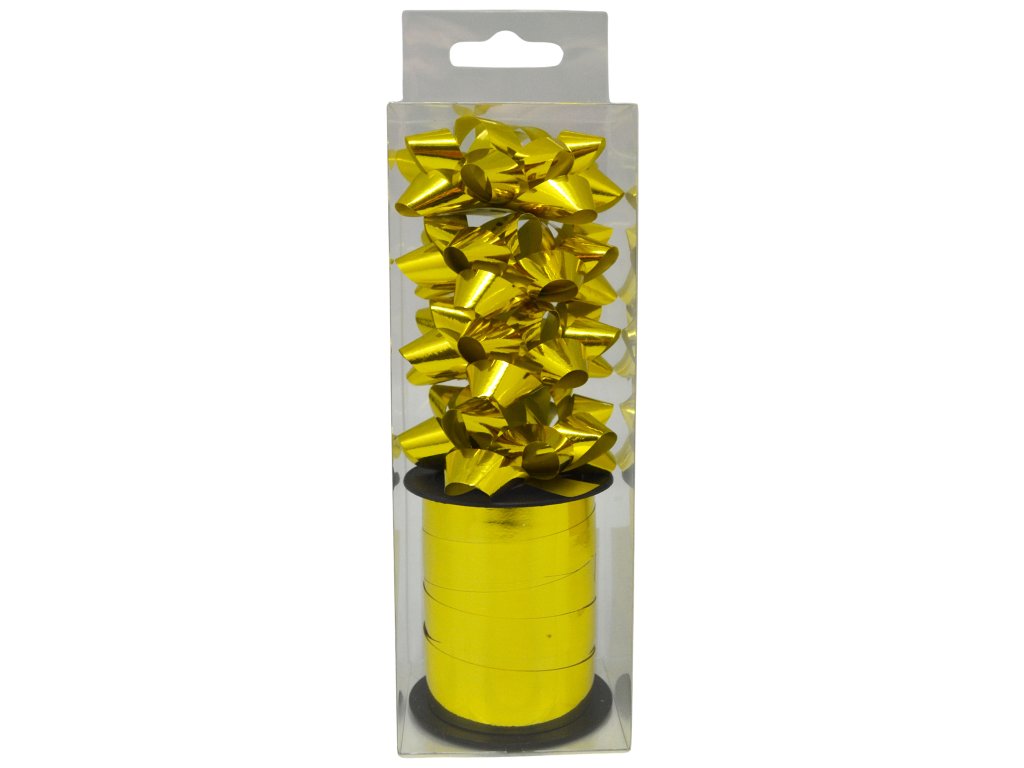 Sada dárkových mašlí, metalická zlatá, 2 ks (šířka 6 mm)