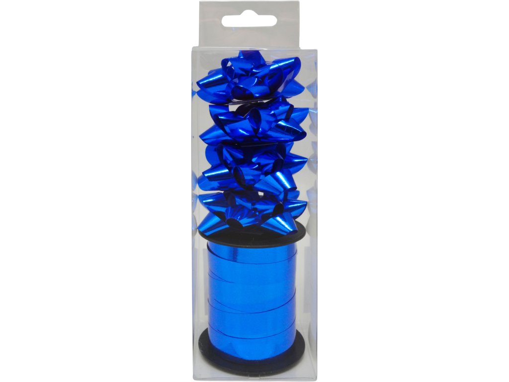 Sada dárkových mašlí, modrá, 4 ks a stuha 10 m