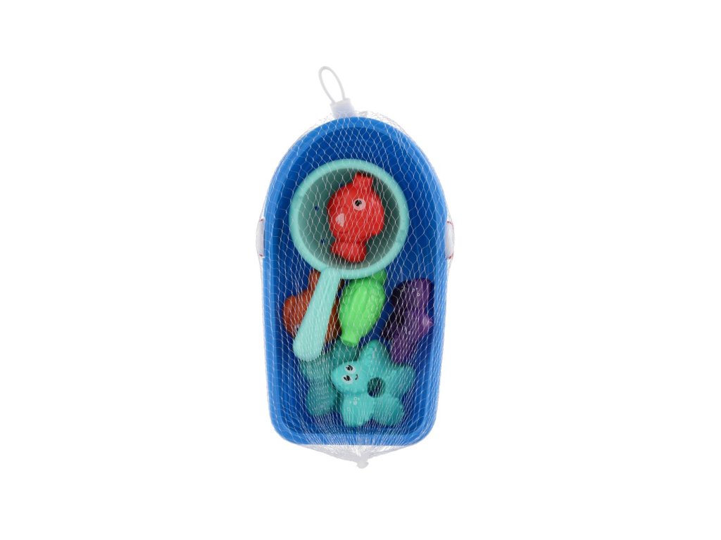 Sada do vany plast lodička, sítko s mořskými zvířátky v síťce 14x24cm