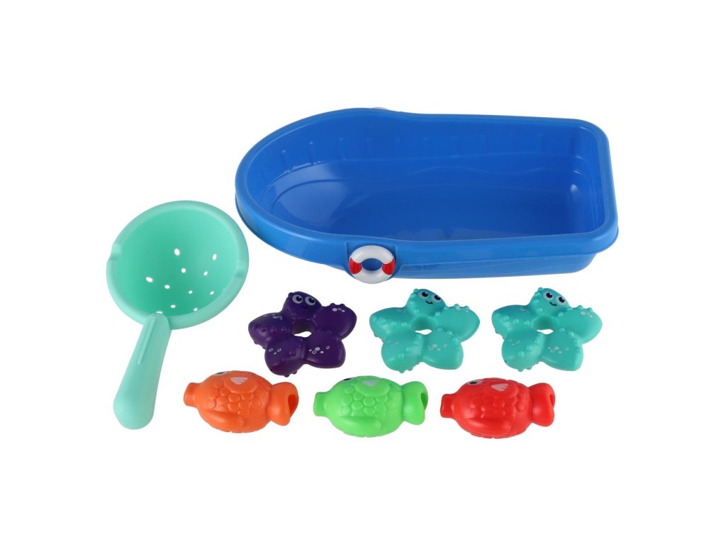 Zpestřete dětem koupání barevnou sadou do vany! Obsahuje plastovou lodičku, sítko a roztomilá mořská zvířátka, která lze chytat nebo se s nimi jen tak bavit ve vodě. Hra rozvíjí jemnou motoriku i fantazii a promění každou koupel v malé vodní dobrodružství.