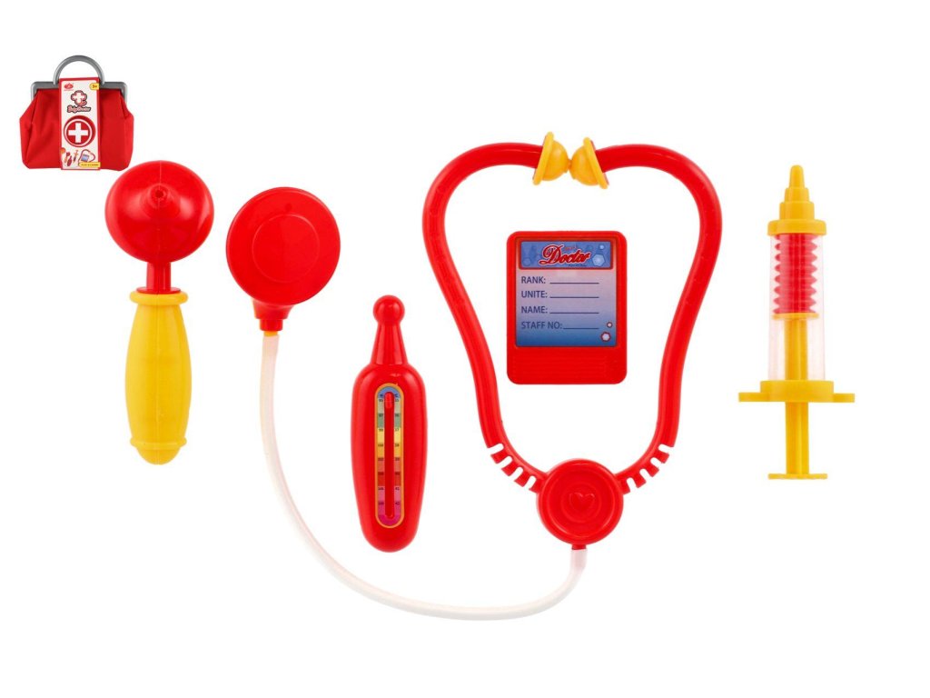 S touto doktorskou sadou si děti mohou zahrát hru na doktory. V praktické lékařské tašce najdou děti vše potřebné. Sada obsahuje stetoskop, teploměr, injekci a kukátko do uší neboli otoskop.