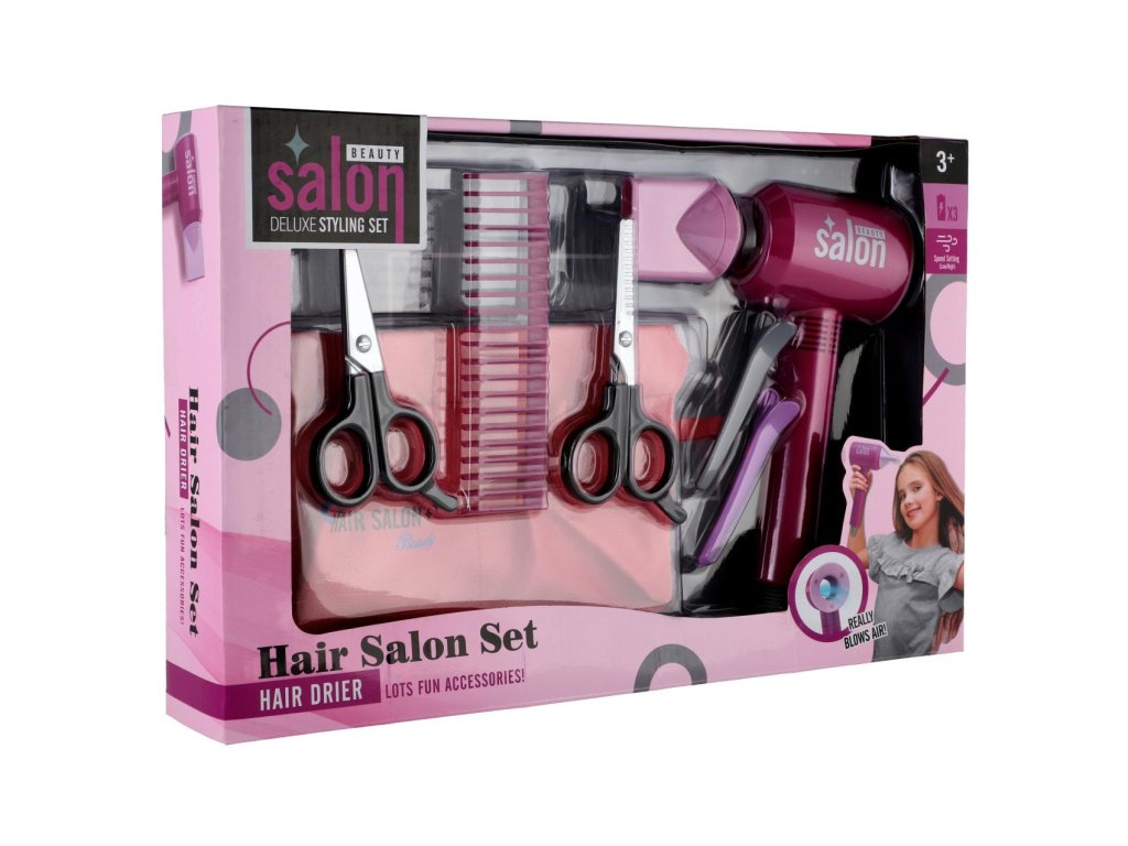 Každá malá parádnice musí mít ve své sbírce tuto sadu krásy s fénem a se spoustou doplňků. Sada je vhodná pro malé kadeřnice, mohou si tak učesat a vyparádit panenku dle své fantazie. Sada je vyrobena z kvalitního plastu. Sada obsahuje spoustu doplňků včetně fénu. Fén je na baterie. Baterie 3x AAA nejsou součástí balení.