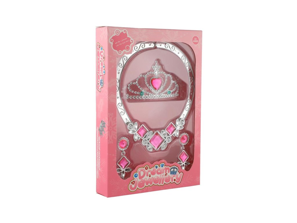 Sada krásy plast korunka, náhrdelník, naušnice v krabičce 15x22cm