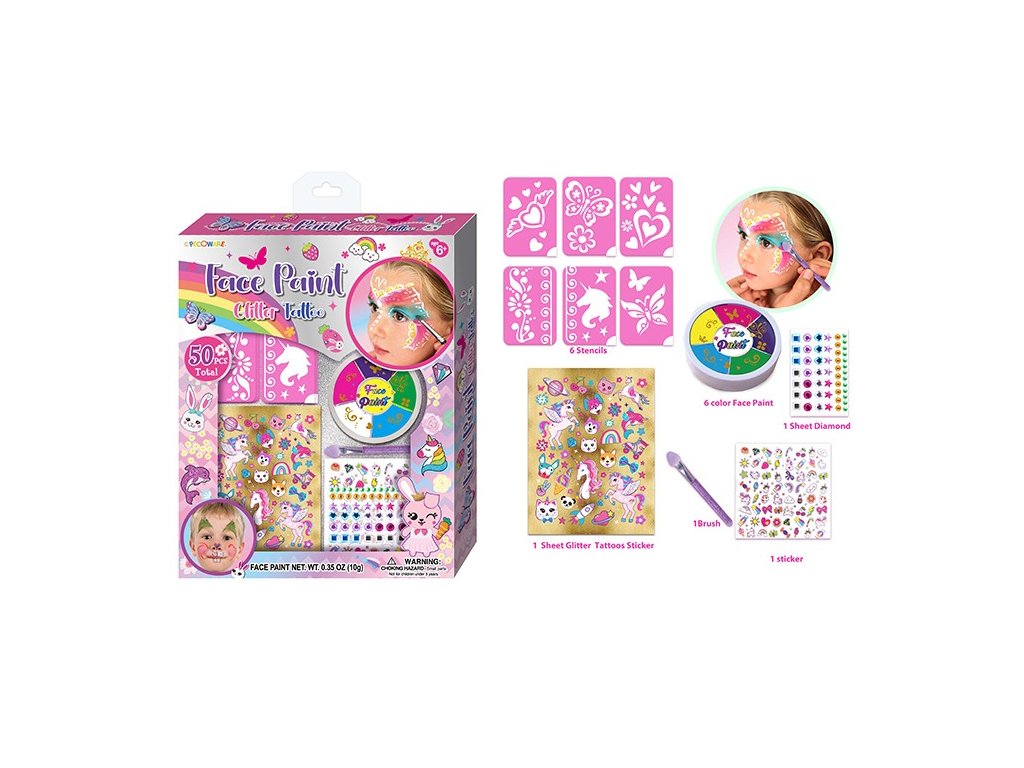Úžasné tetovací studio, se kterým si vyzdobíš vlasy a tělo barevnými vzory i kamínky. Sada obsahuje třpytivá tetování, kamínky, šablony, barevná tetovací pera a barvy na obličej se štětečkem. Zažij spoustu zábavy a ozdob sebe i kamarády. Vhodné pro děti od 6ti let.