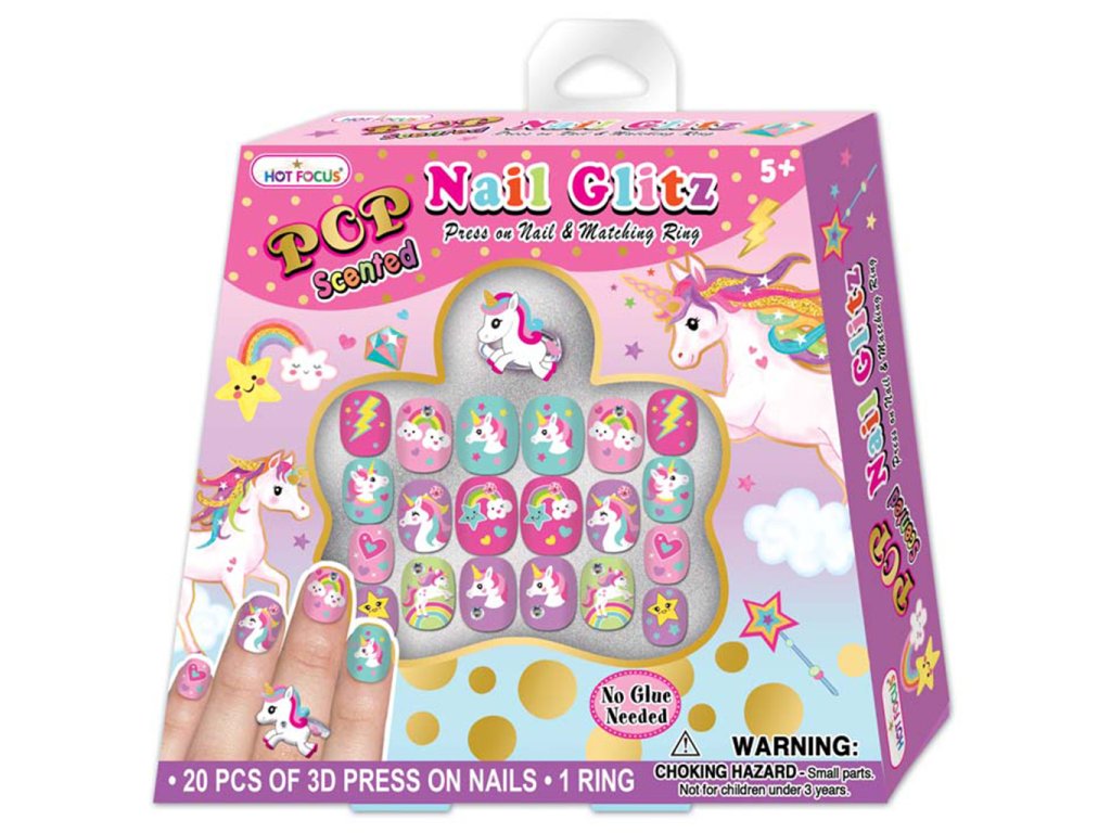 Ozdobte své nehty bez potřeby laku na nehty nebo lepidla 20 samolepkami s motivy jednorožců. Součástí je také prsten s jednorožcem. Doporučený věk: 5 let+