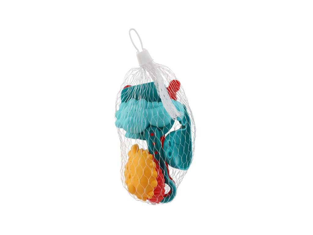 Sada na písek plast lopatka,hrabičky,formičky 4ks v síťce 10x16cm 18m+
