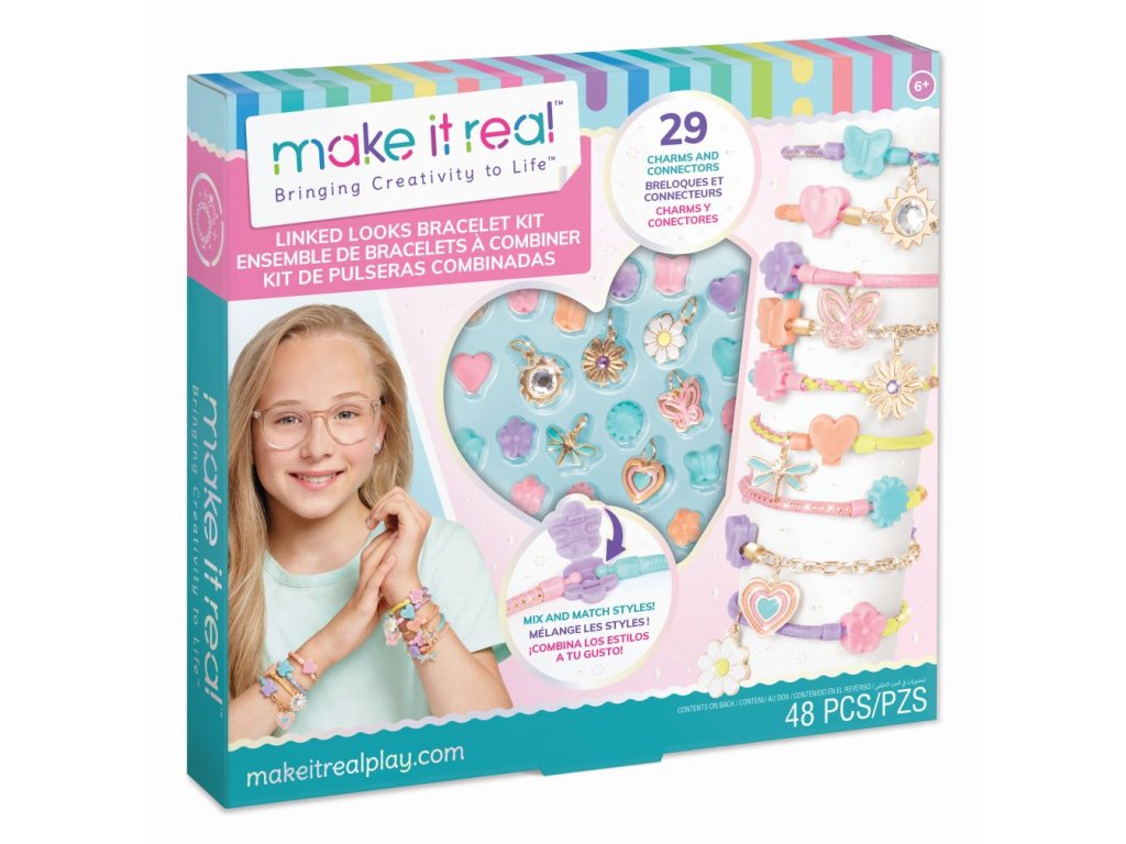 Vytvořte propojené vzhledy s touto kompletní sadou na výrobu náramků! Kombinujte řetízek a barevné šňůrové části tak, že je spojíte ozdobnými články. Ozdobte 6 roztomilými přívěsky. Mladí designéři mohou vytvářet jednoduché nebo vrstvené náramky, styly zábalu nebo dokonce náhrdelníky, poté smíchat a sladit další, aby změnili vzhled. Přidejte kouzla pro další přizpůsobení každého stylu a vyměňujte kousky, aby doplnily jakýkoli outfit dne. Díky jednoduchým pokynům, které vedou začínající návrháře na cestě, je tato sada ideální pro módní doplnění, kteří chtějí vytvořit stylové doplňky. Je to skvělý tip na dárek k svátku, narozeninám nebo jen tak. Ideální pro děti ve věku 6+.