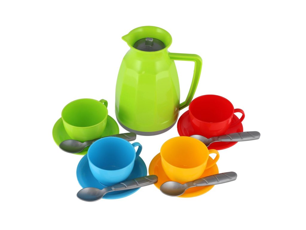 Čajová souprava je nezbytné vybavení každého dětského pokoje. Každá malá hospodyňka ho musí mít ve své kuchyňce, aby mohla slavnostně pohostit každou návštěvu! Čajová souprava umožňuje hrát si o samotě i s přáteli. Dítě může připravit čaj pro panenky, medvídka nebo sourozence či rodiče. Sada podporuje představivost a rozvíjí dětskou fantazii a díky barevnému designu se zalíbí každé malé slečně, která může pozvat kamarádky a uspořádat nezapomenutelný čajový dýchánek. Souprava obsahuje 13ks včetně čajové konvice, baleno v síťce.