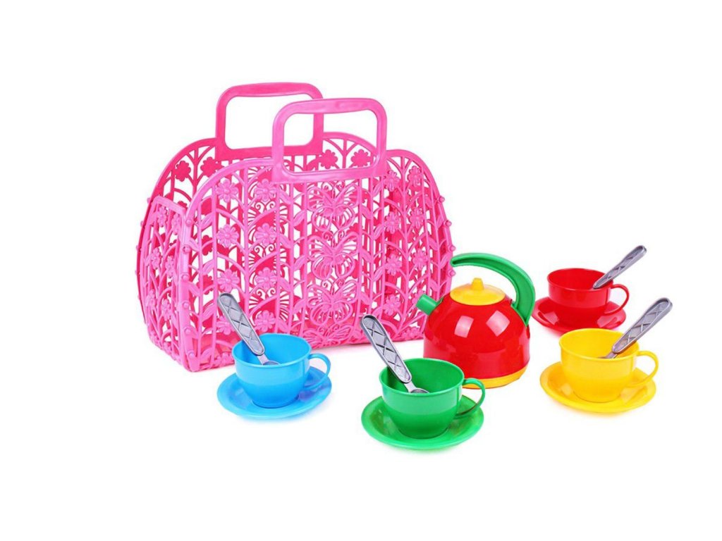 Sada nádobí plast v plastové tašce/kabelce 25x22x11 cm