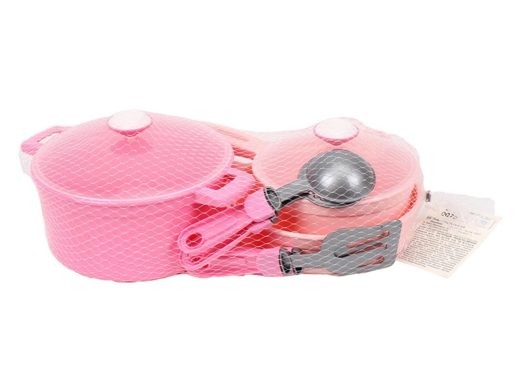 Sada nádobí s doplňky plast růžová v síťce 20x30x10cm 18m+