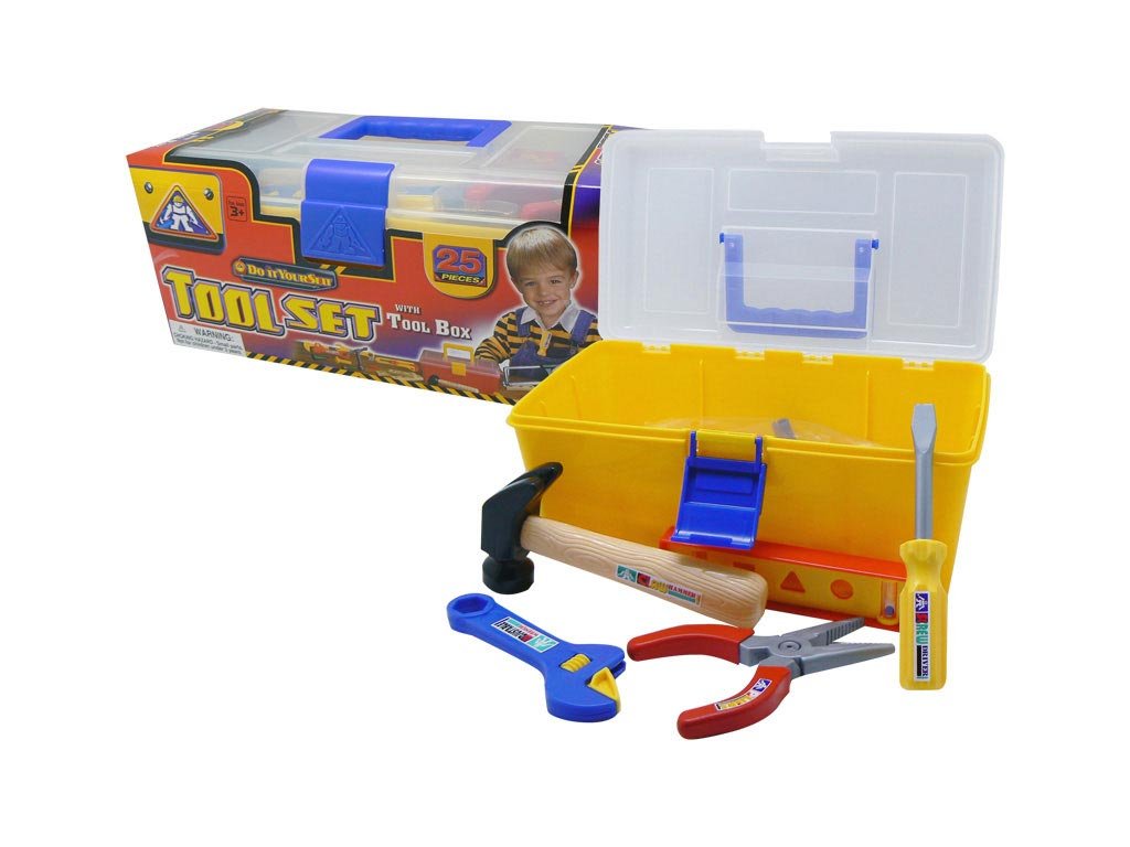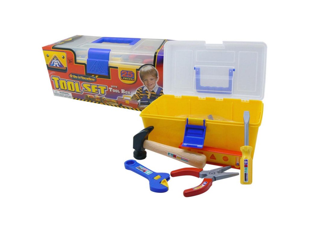 - Sada základního nářadí z plastu pro každého malého kutila. - Kufřík obsahuje 25 kusů nářadí. - Vše je uloženo v praktickém kufříku. - Rozměr 29x13x16cm. - Kufřík - 2 druhy: červeno-žlutý, žluto-modrý.