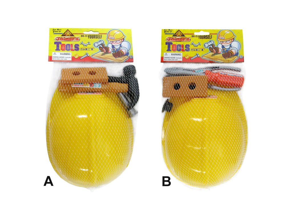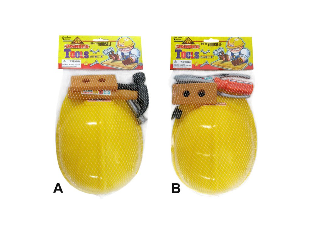 Sada nářadí s přilbou a + nářadí. V síťce.
