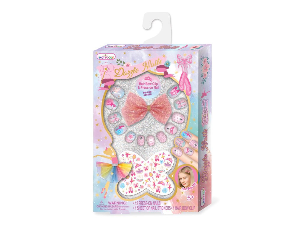 Sada Třpytivé nehty s nálepkami a sponou do vlasů - Baletka