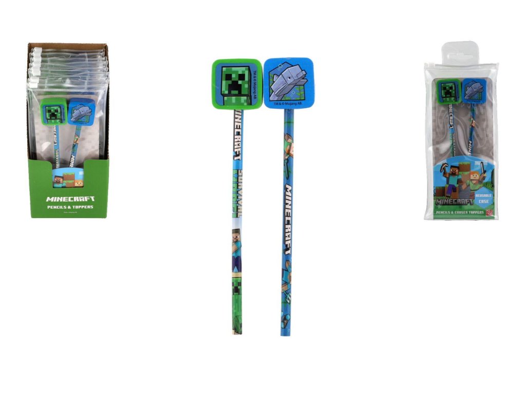 Sada tužek Minecraft 2ks s topperem v plastovém obalu 10,5x23x2cm 8ks v boxu