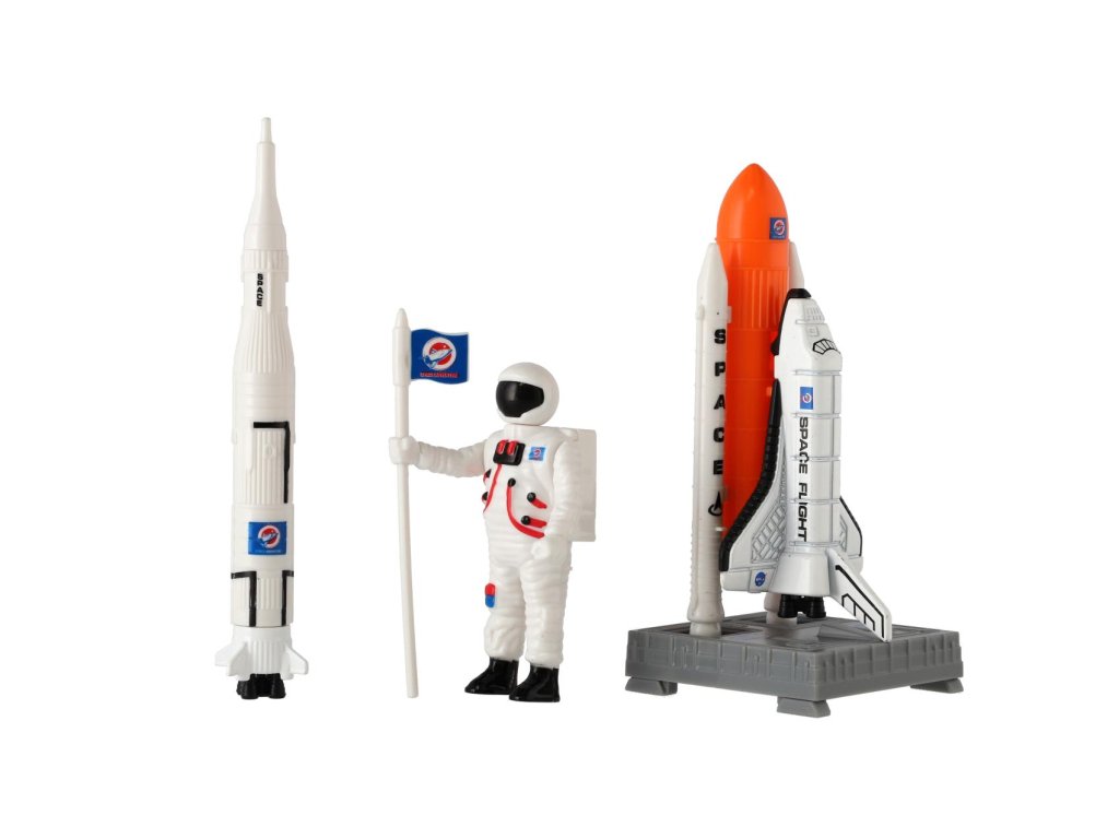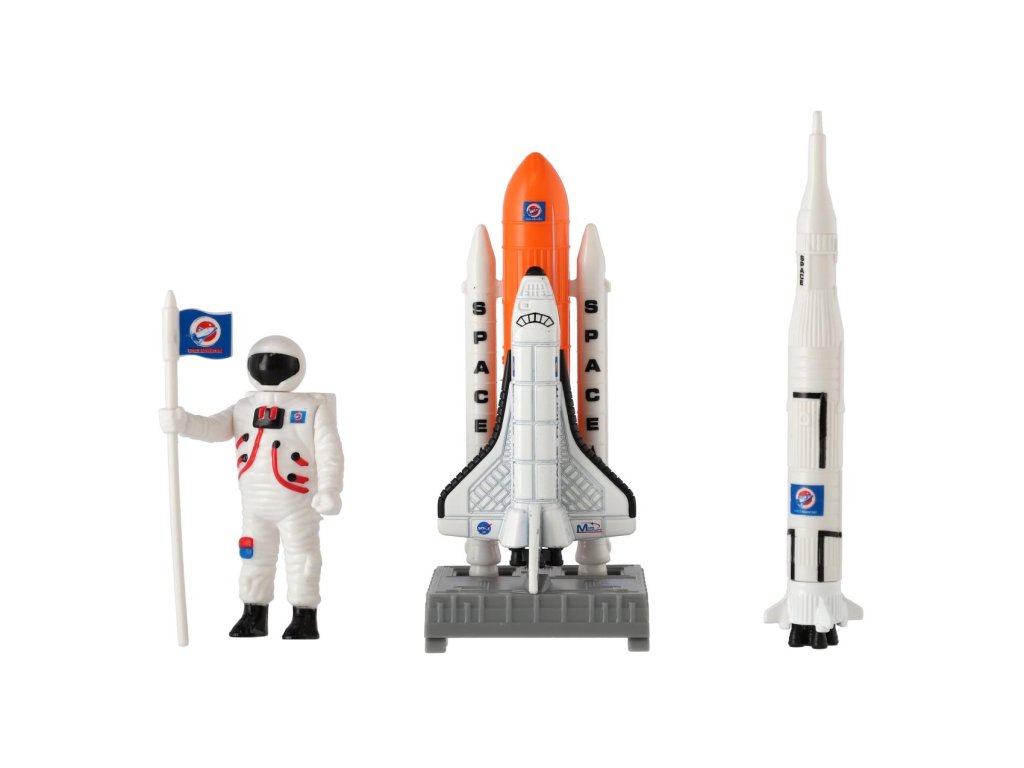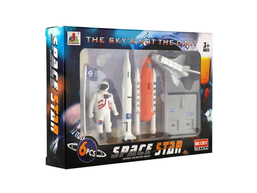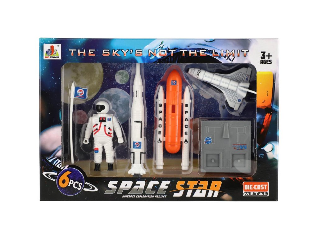 Sada vesmír 6ks kov/plast astronaut, raketoplán s doplňky v krabičce 25x17x4,5cm