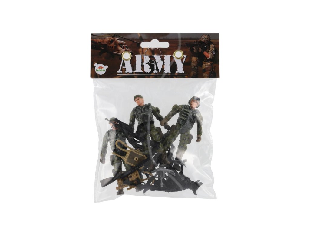 Staň se součástí bojové jednotky a vydej se na vítězné tažení. Postav si své vojáky a bitva může začít. V balení jsou tři vojáci a doplňky - zbraně, pes, počítač a další.