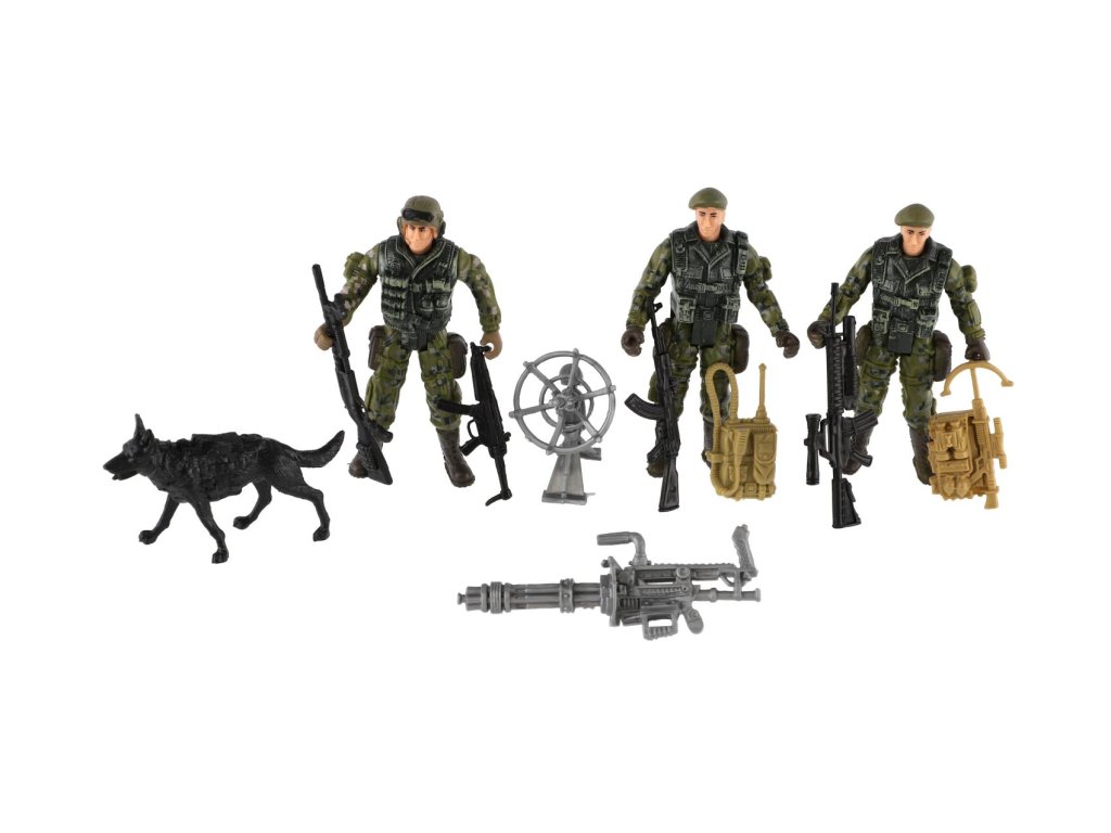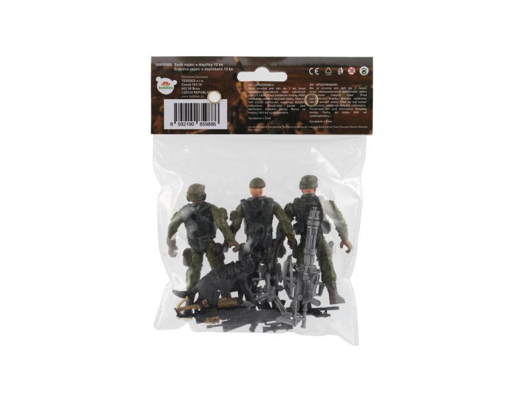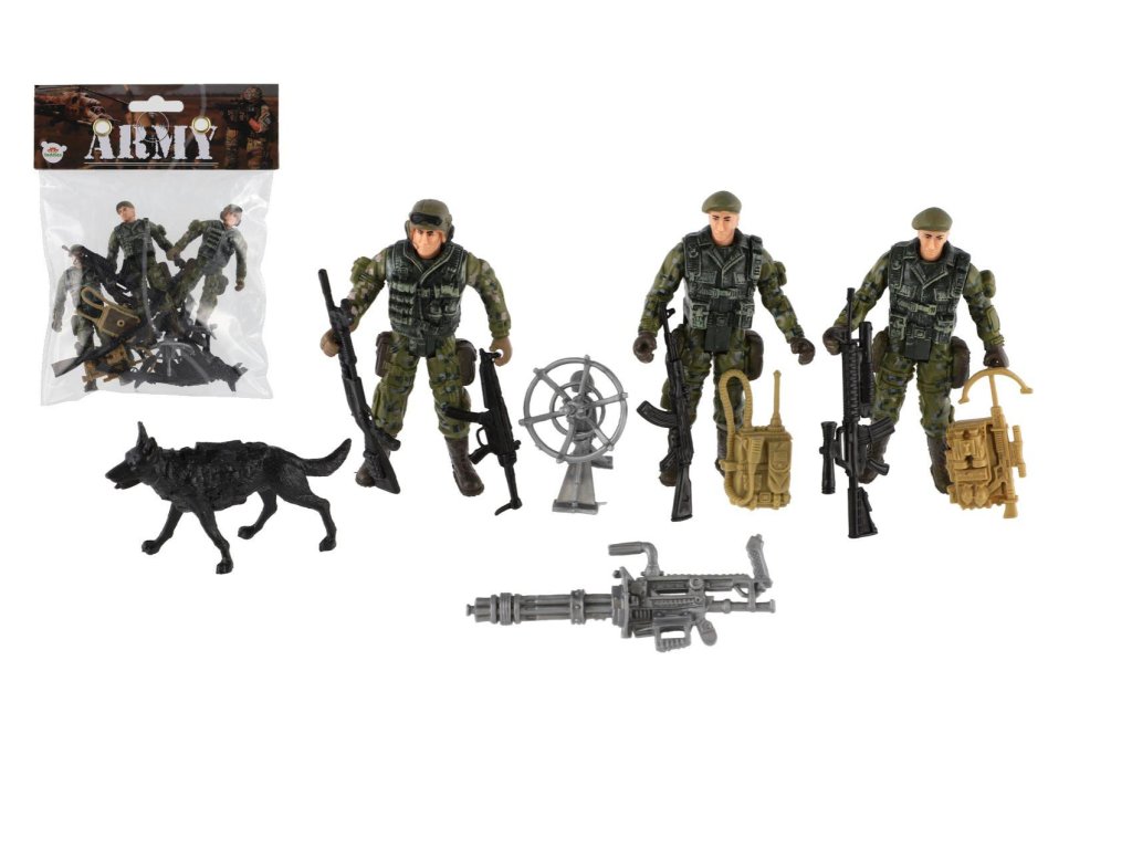 Sada vojáci se psem s doplňky 12ks plast v sáčku 17x20x3cm