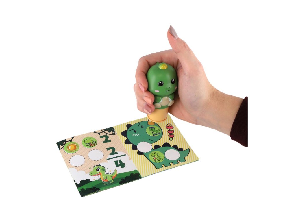 Samolepkové razítko/Razítko se samolepkami dinosaurus plast s náplněmi v krab. 10x12cm 12ks v boxu
