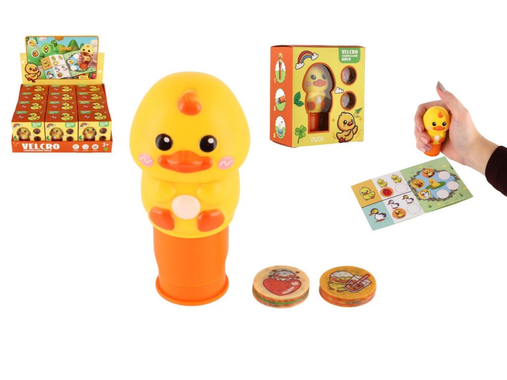 Samolepkové razítko/Razítko se samolepkami kachna plast s nálněmi v krabičce 10x12cm 12ks v boxu