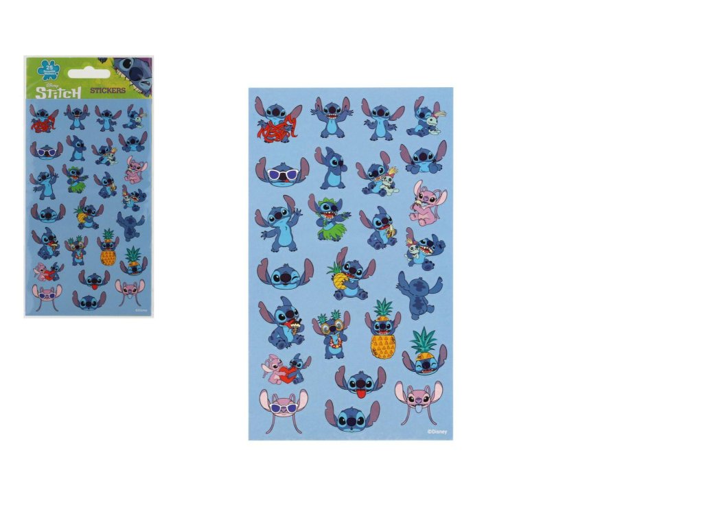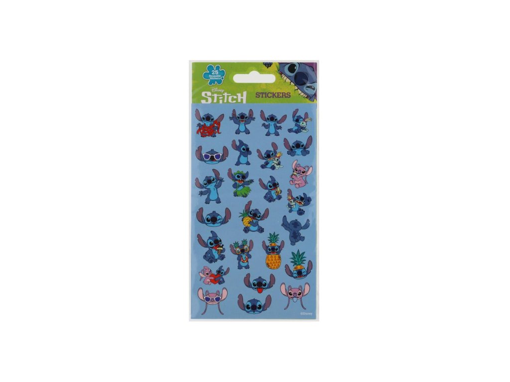 Opakovaně použitelné samolepky s licenčním motivem. Arch obsahuje 25 ks samolepek. Velikost archu 19,5 × 9,5 cm. Rozveselte každý den veselými obrázky Stitche – ideální drobnost pro fanoušky Disney.