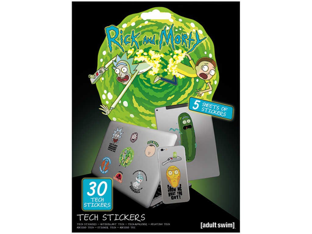 Sada obsahuje 30ks vinylových samolepek (tech stickers) s motivy z oblíbeného amerického animovaného seriálu Rick and Morty. Samolepky můžete použít např. na laptop, tablet nebo mobilní telefon.