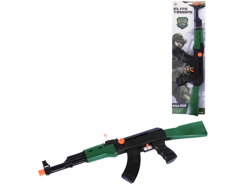 Čeká tě vojenská akce? Tak popadni tento černo-zelený, plastový samopal a vzhůru do boje! Samopal funguje na setrvačník. Stačí jen natáhnout a můžeš střílet! Baleno na kartě.