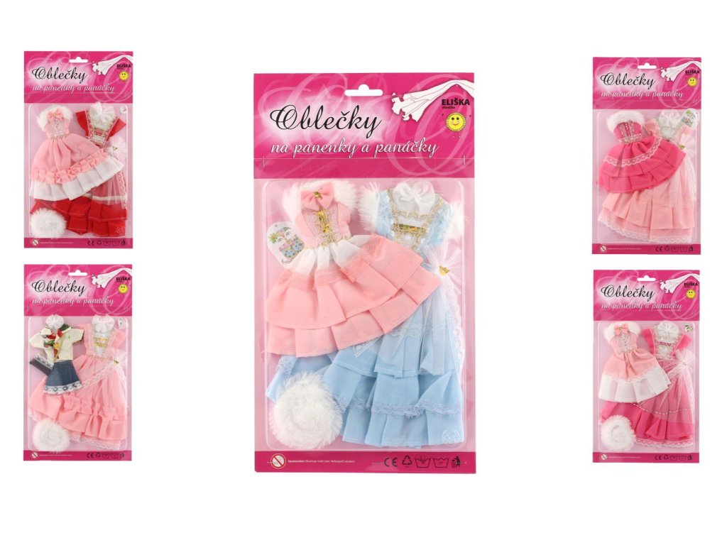 Šaty/Oblečky na panenky 2ks s doplňky mix druhů na kartě 21x30cm