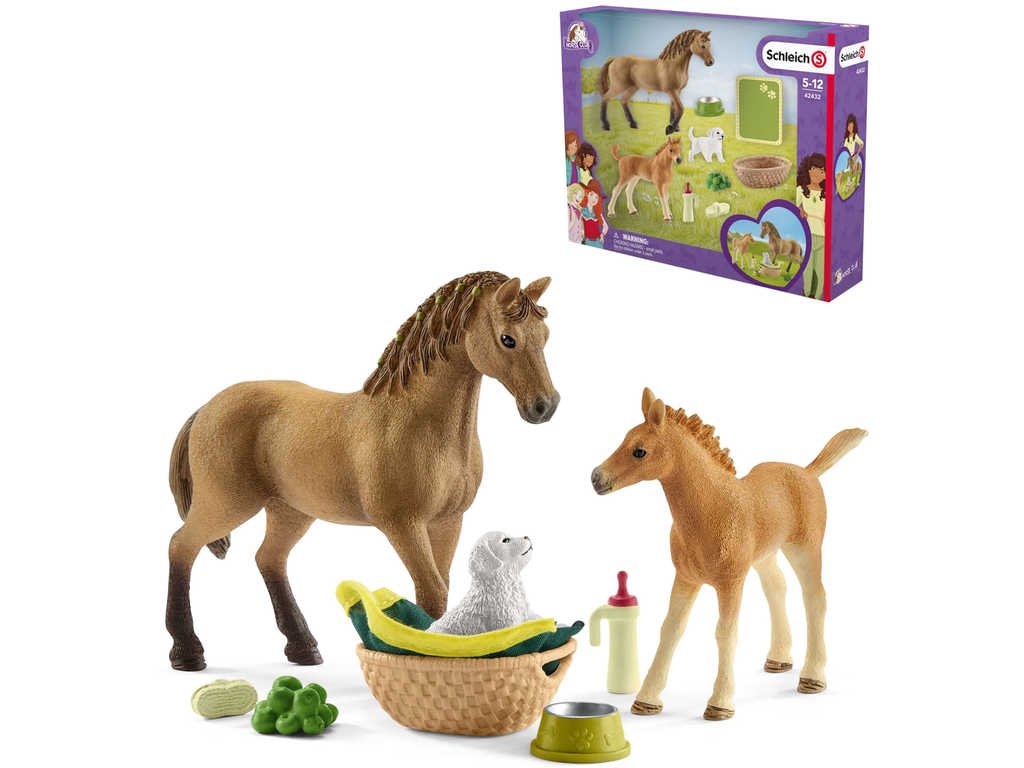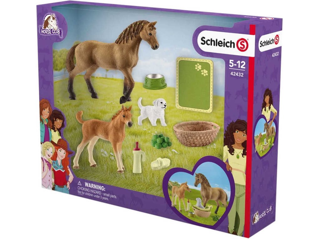 SCHLEICH Quarter kůň a hříbě set se štěňátkem a doplňky plast